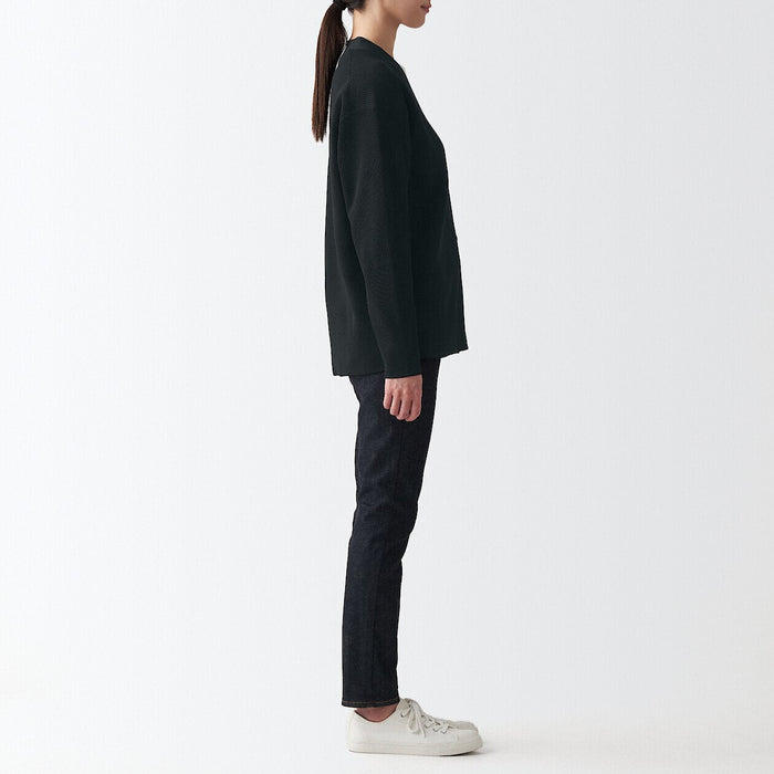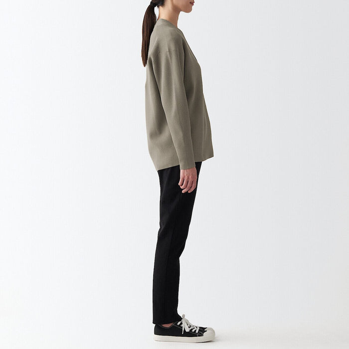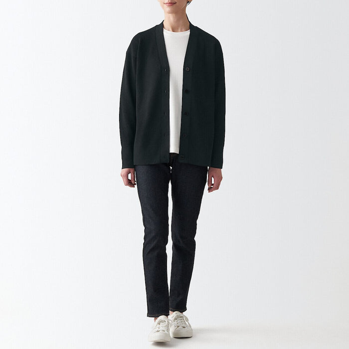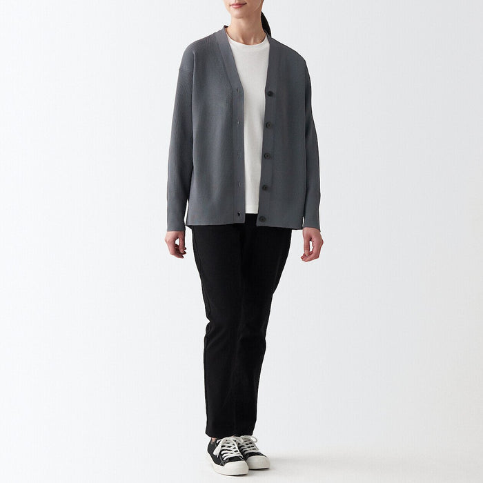 The cardigan was made with loosely knitted fabric with elastic threads to keep the shape solid and uneasy about losing its style. It is simple to clean and machine washable. Highly recommended to use a laundry net when washing.