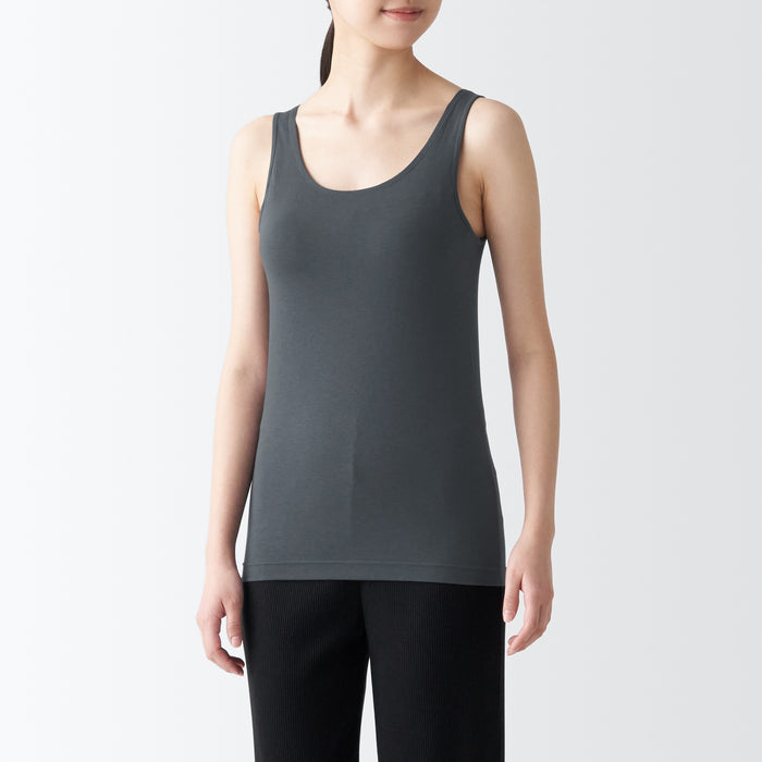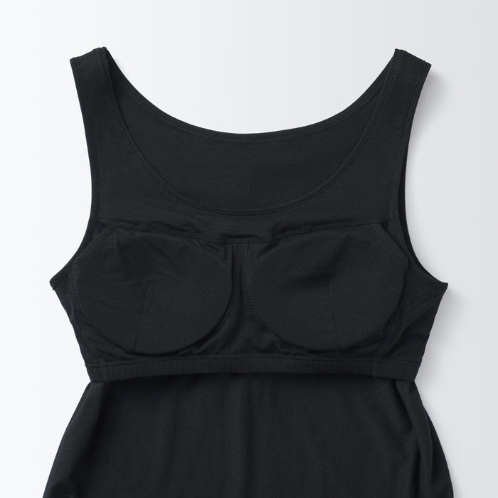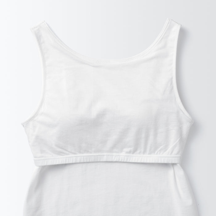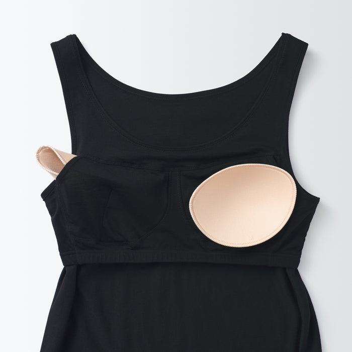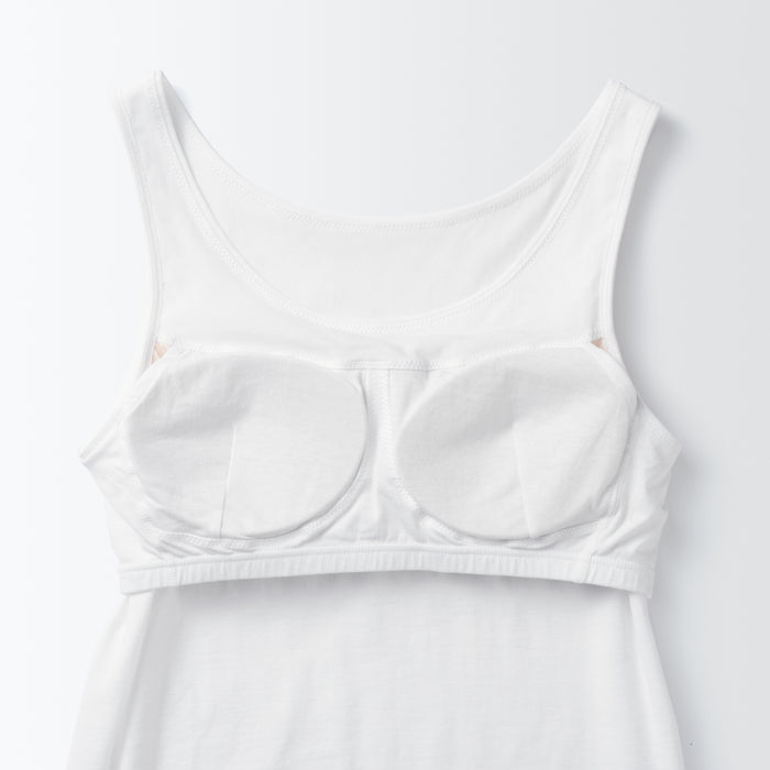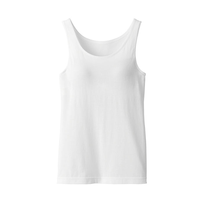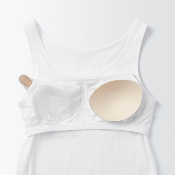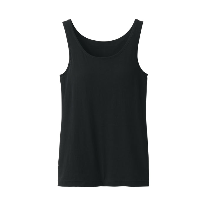 A tank top with removable bra cups, made from a blend of organic cotton and soft silk. Features a side seamless design for extra comfort while wearing.
