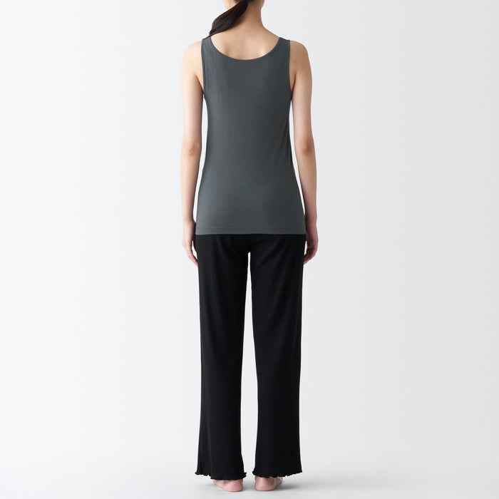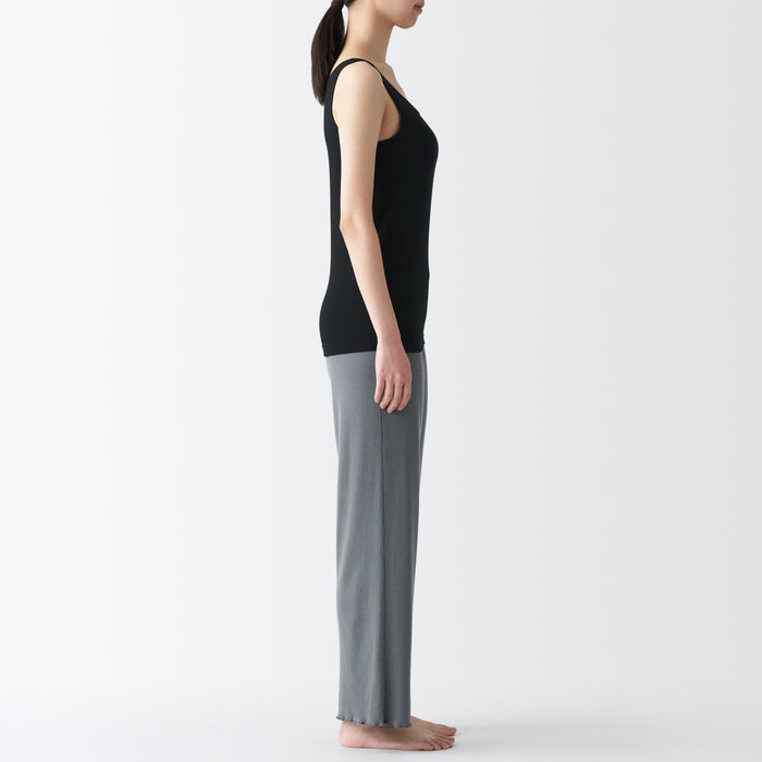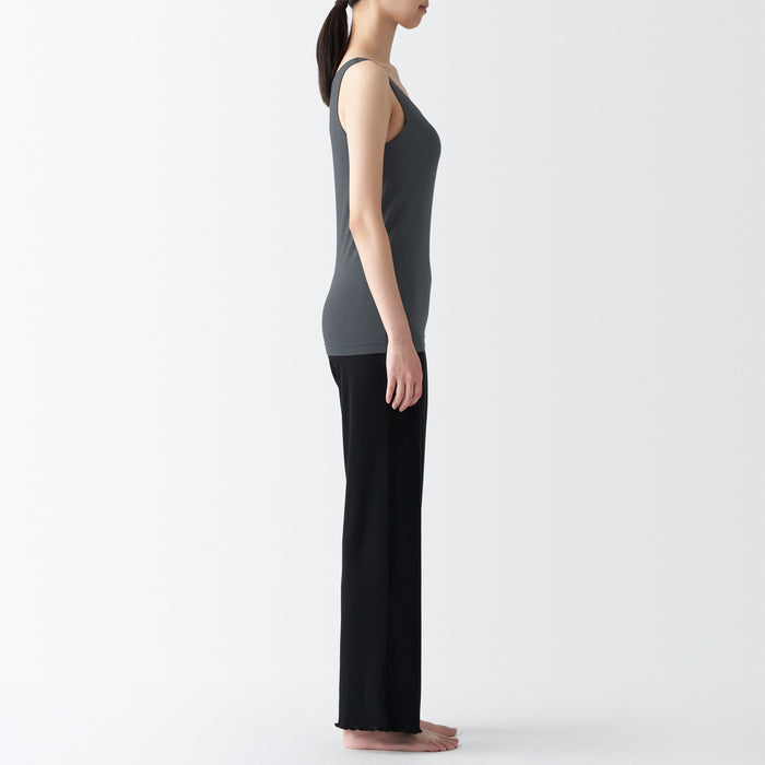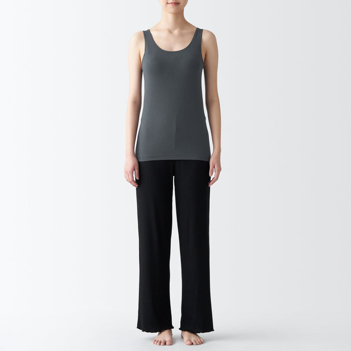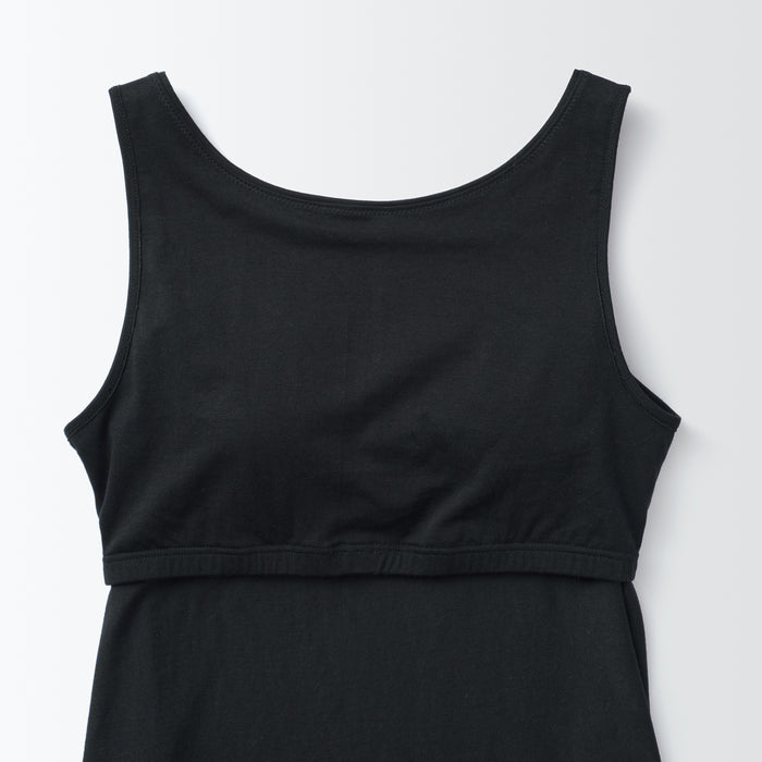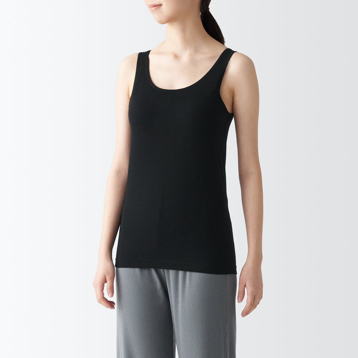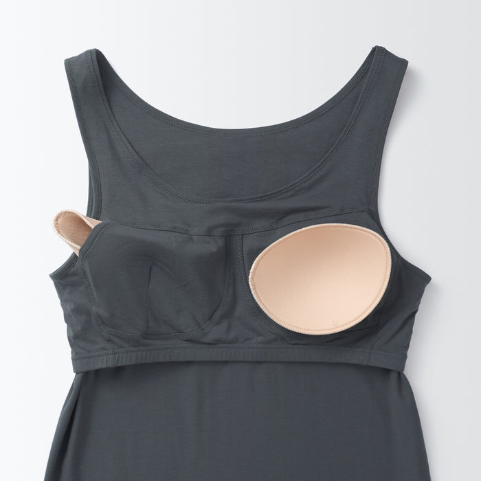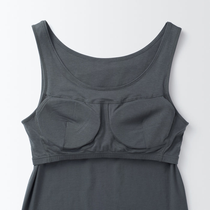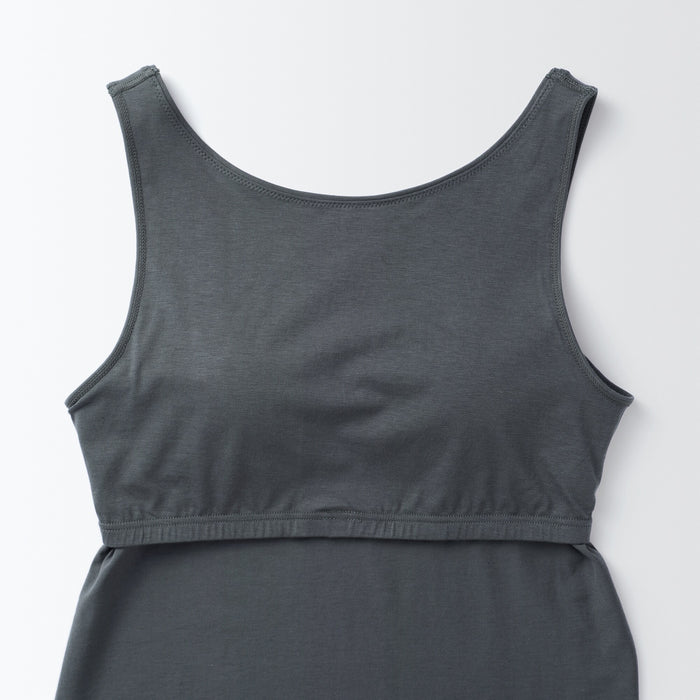 A tank top with removable bra cups, made from a blend of organic cotton and soft silk. Features a side seamless design for extra comfort while wearing.