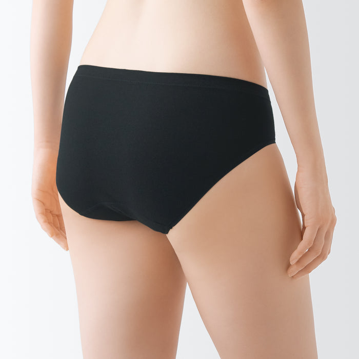 It is sewn with circular knitting for a seamless finish. The gusset part is doubled, and not made with waterproof fabric, so you can wear it everyday.