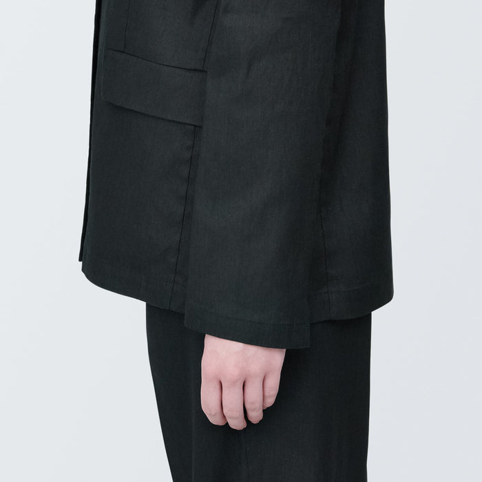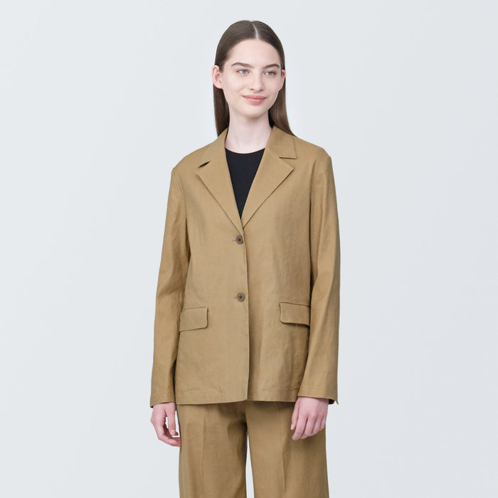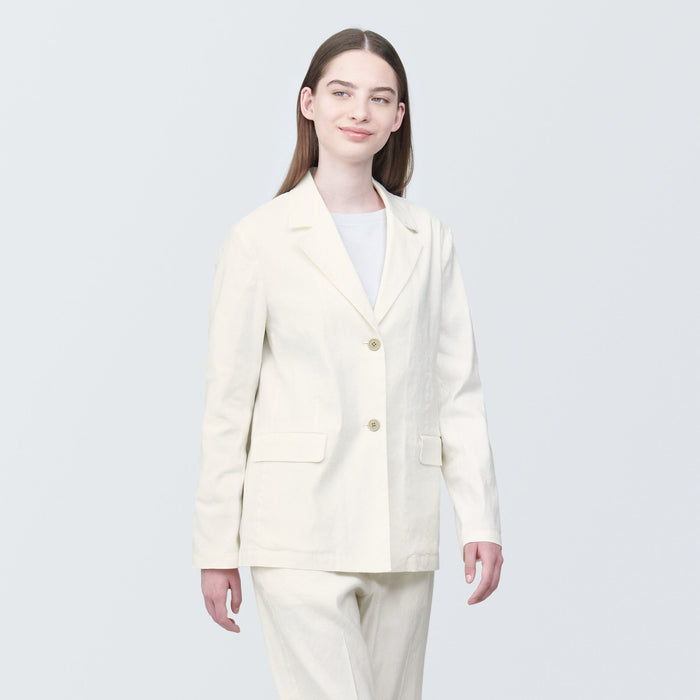A tailored jacket made with a stretchy hemp mix for a comfortable fit.