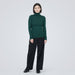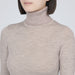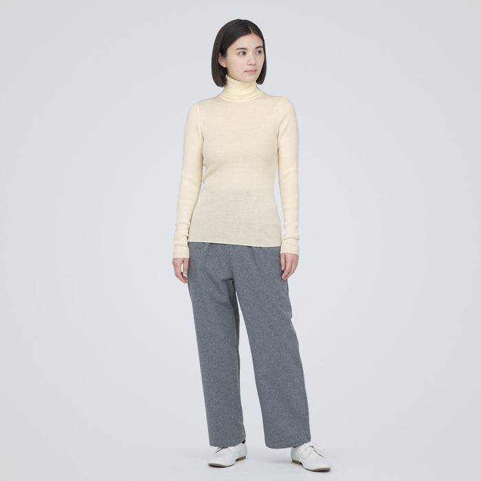 A soft and warm turtleneck is made with very fine wool, and the collar is made with a cotton-polyester blend, so it does not itch near the neck area. Machine washable and easy to take care of.