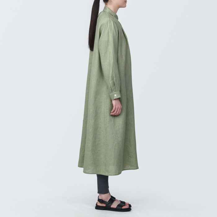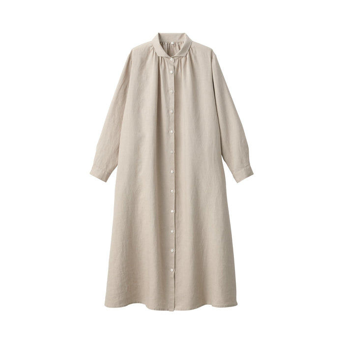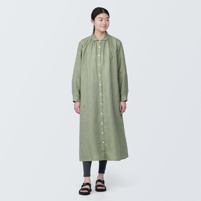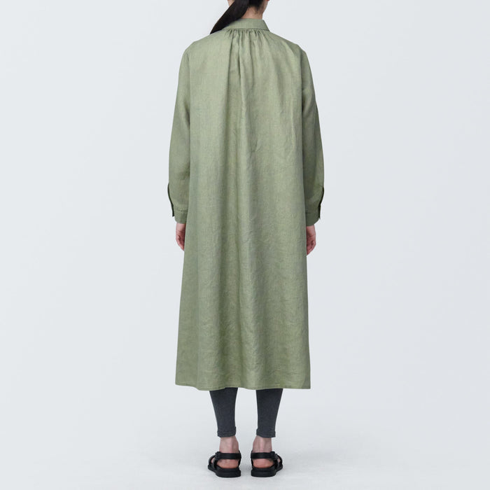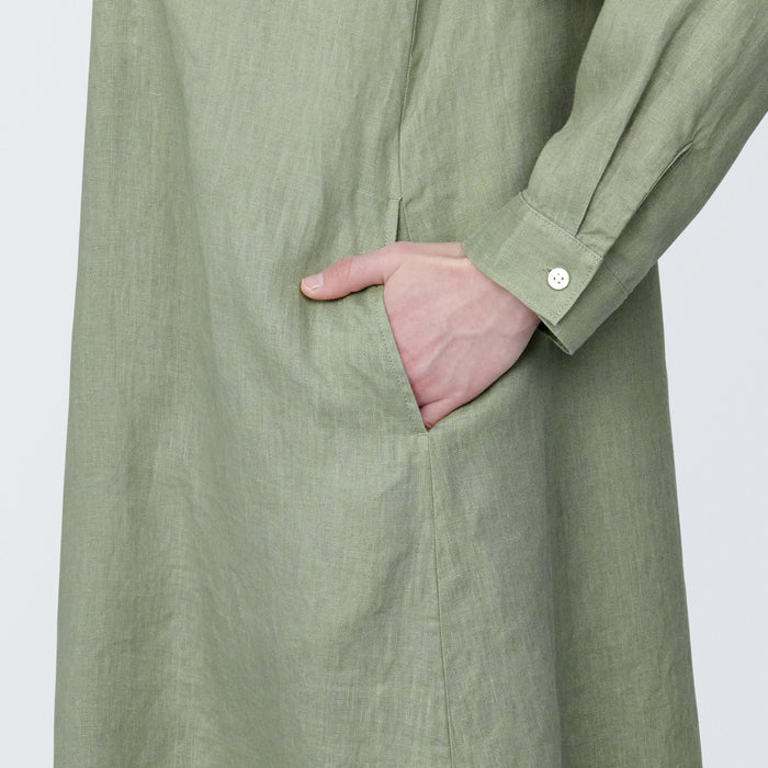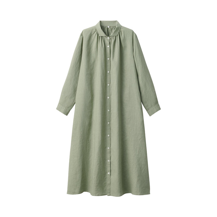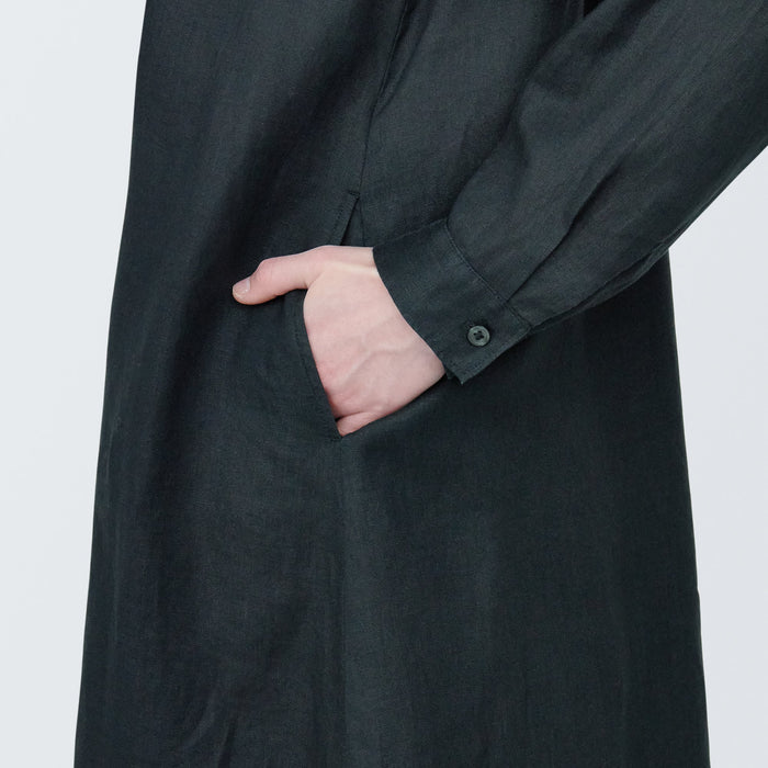 Women's Washed Linen Long Sleeve Shirt Dress