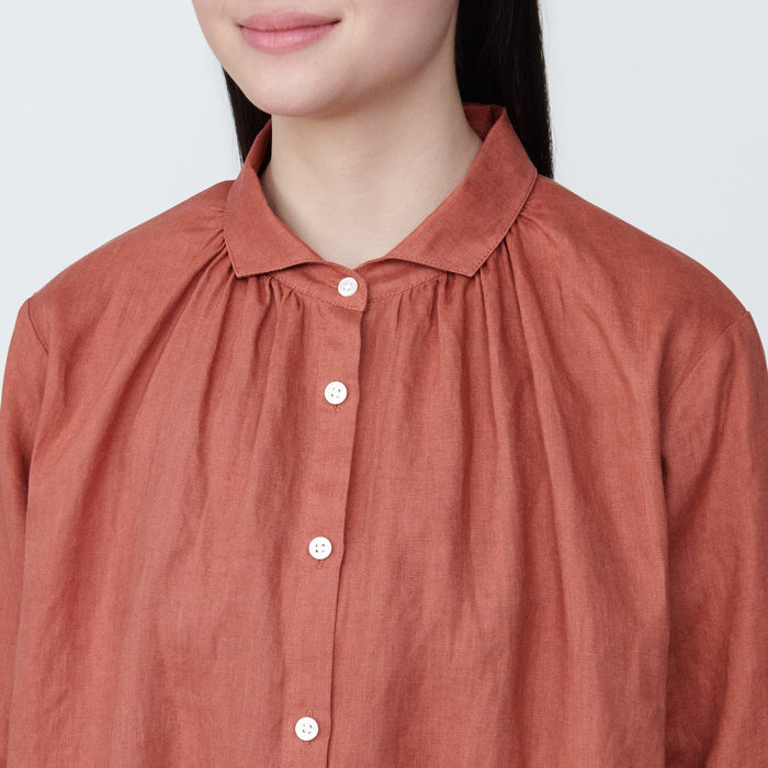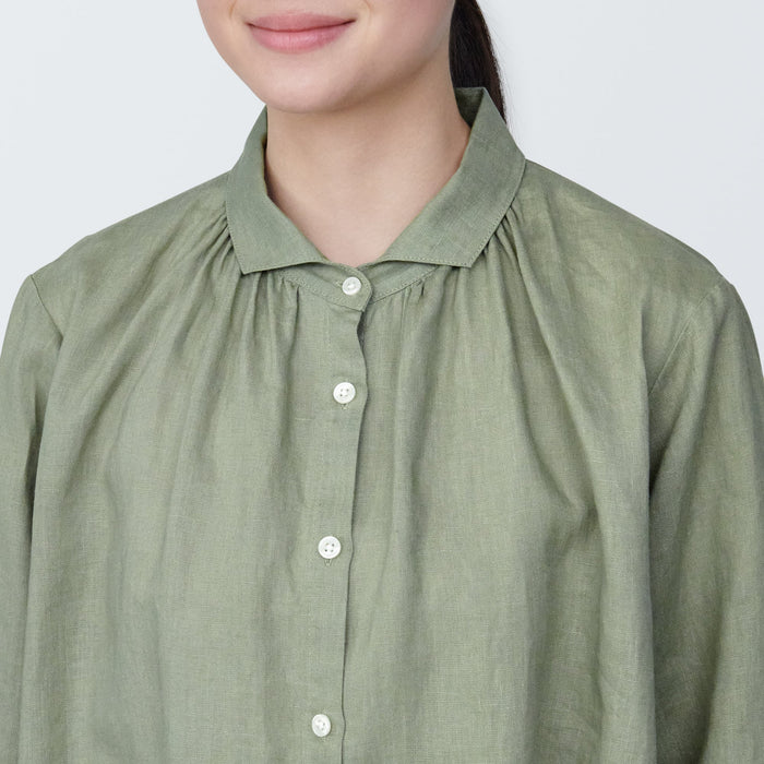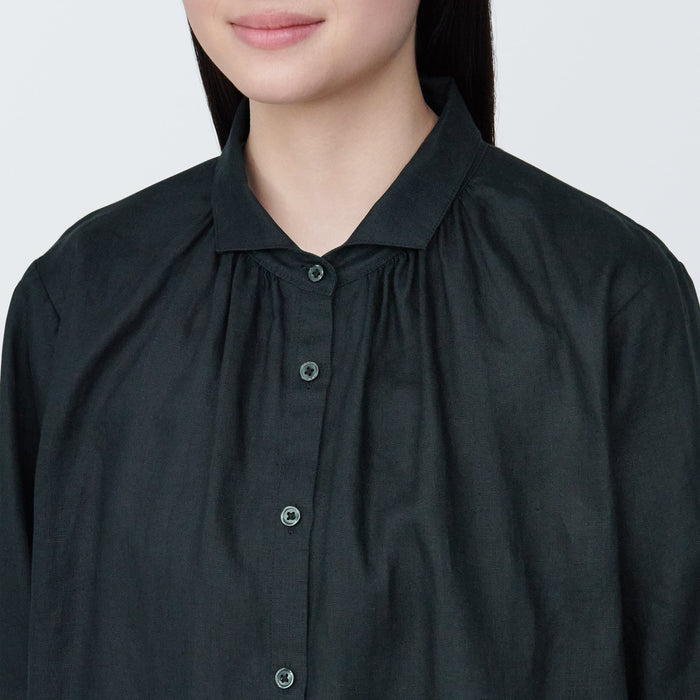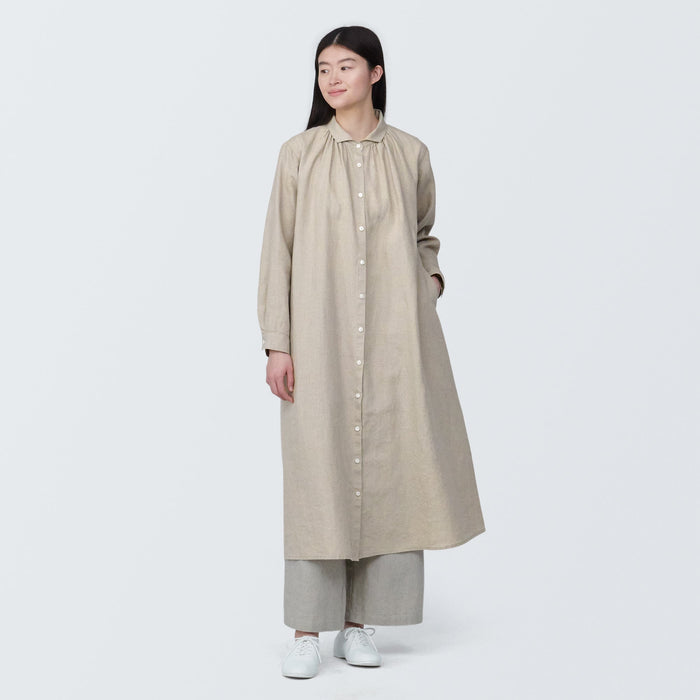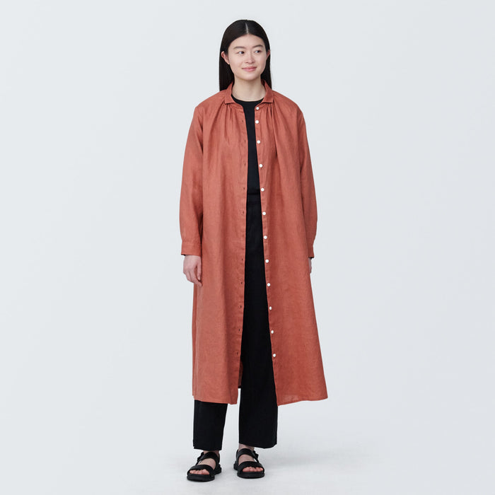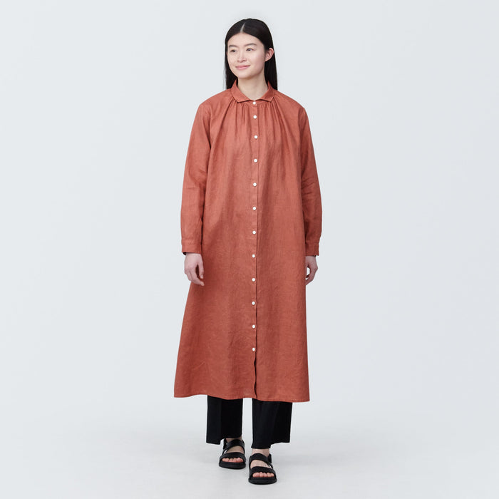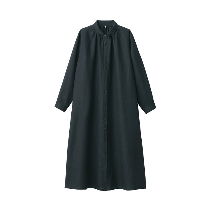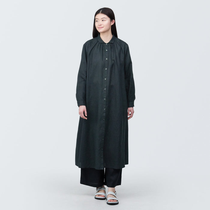 Women's Washed Linen Long Sleeve Shirt Dress