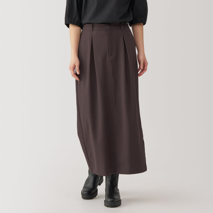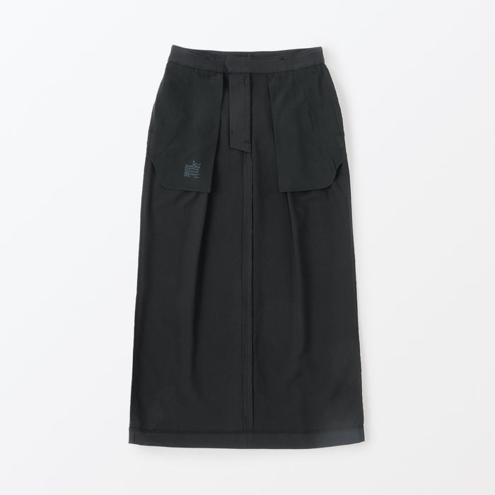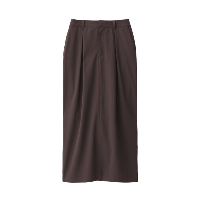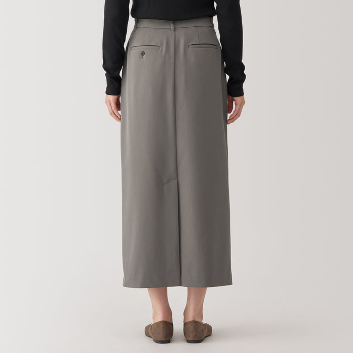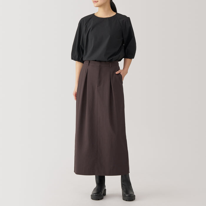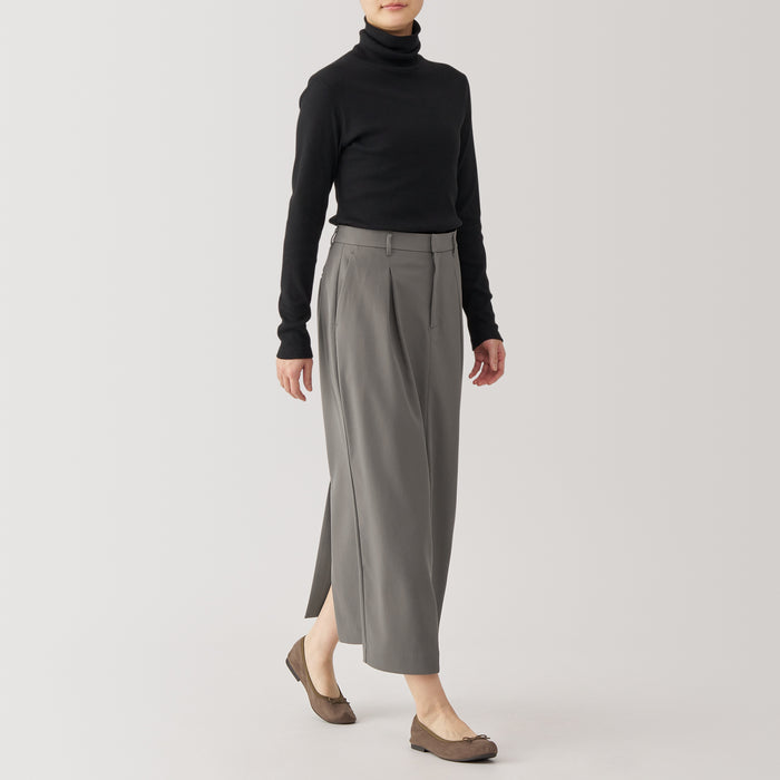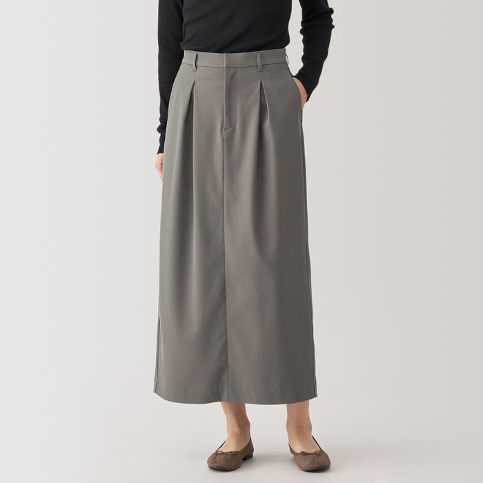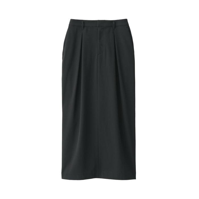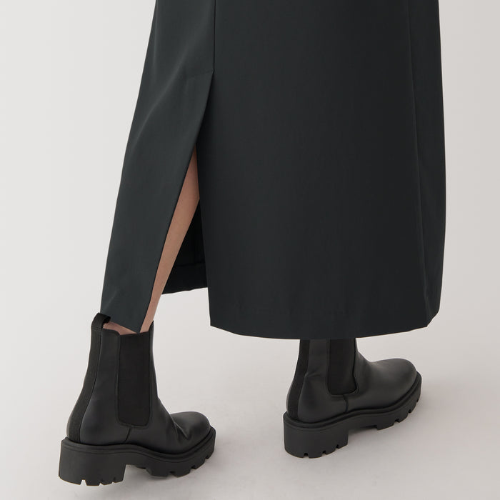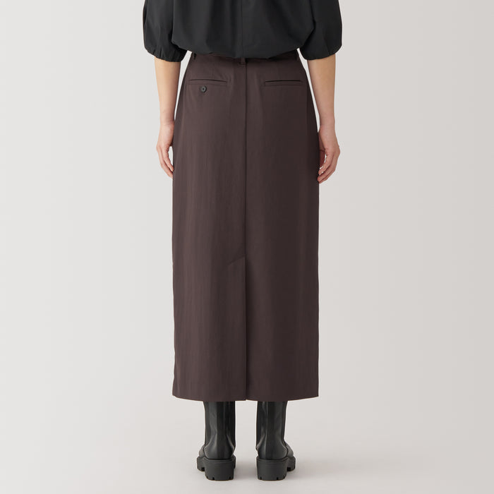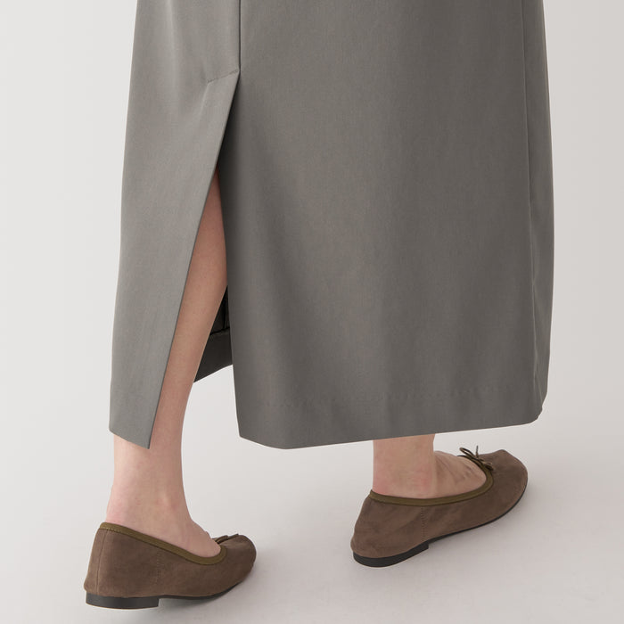A long skirt designed with a straight silhouette and front darts for an elegant look. Made with a water-repellent material that is wrinkle-resistant for easy care. The stretchy fabric and back slit allow you to move freely and comfortably.