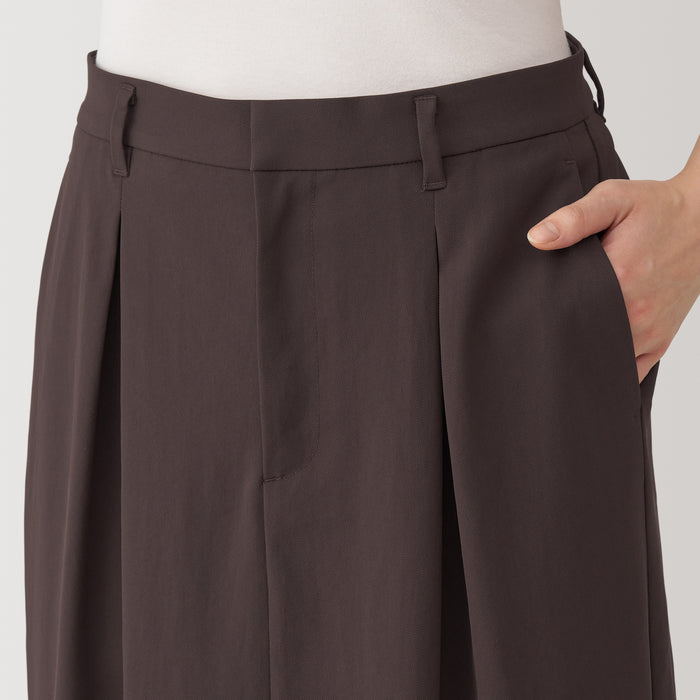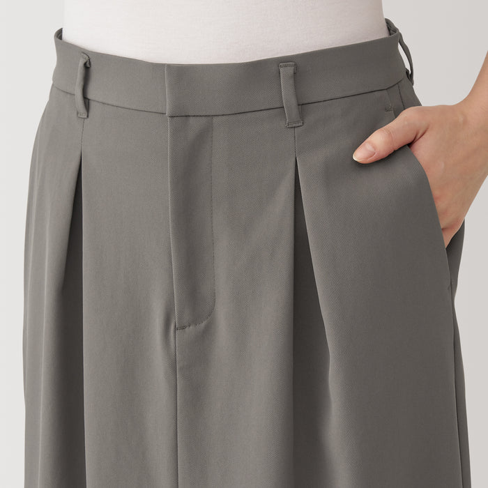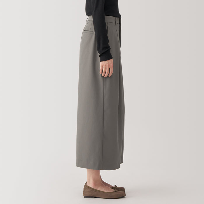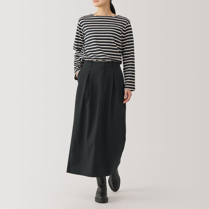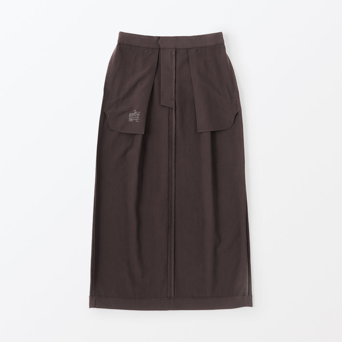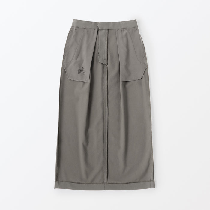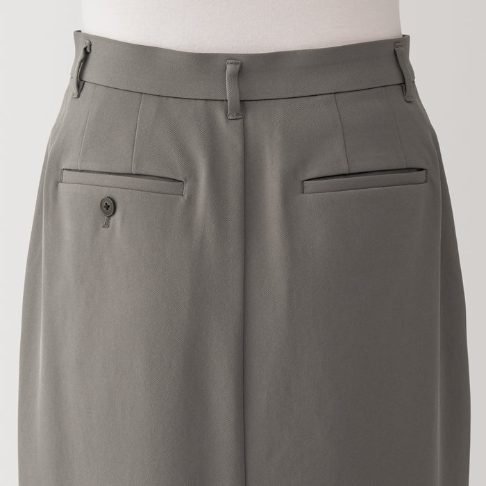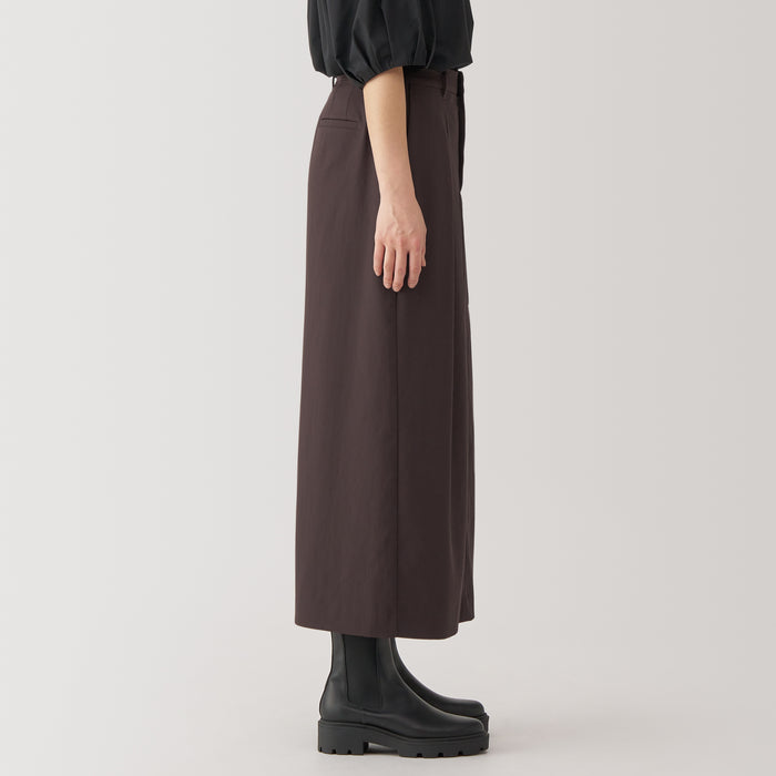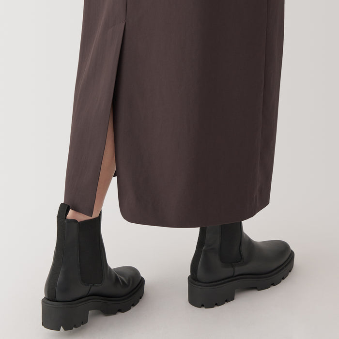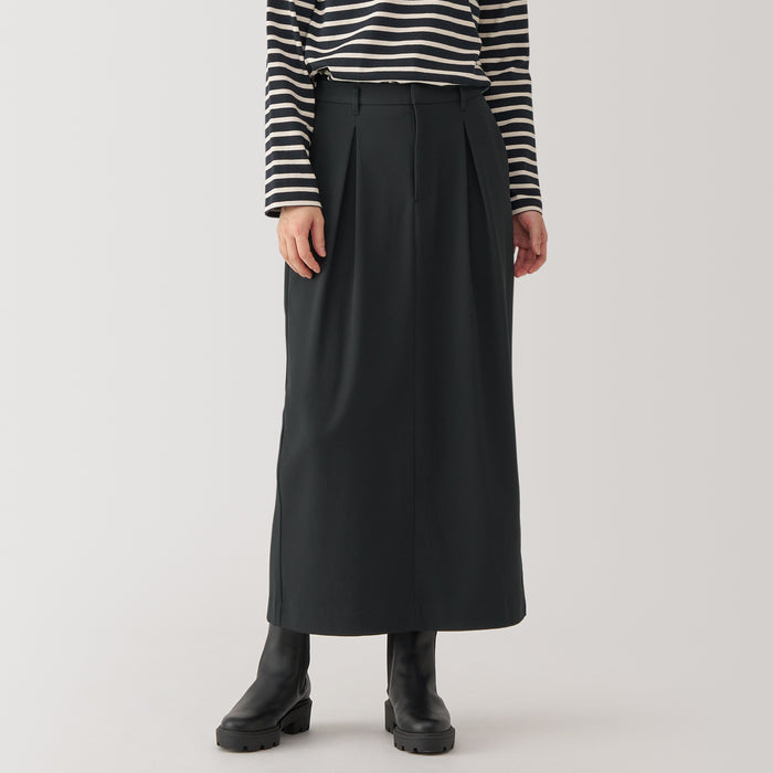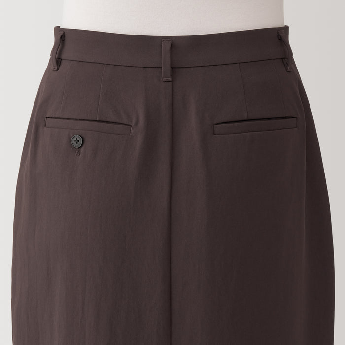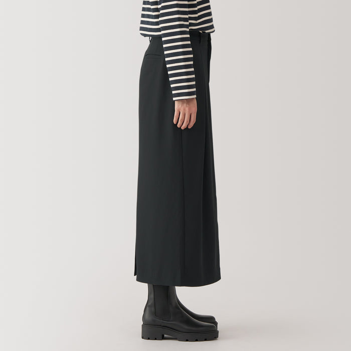 A long skirt designed with a straight silhouette and front darts for an elegant look. Made with a water-repellent material that is wrinkle-resistant for easy care. The stretchy fabric and back slit allow you to move freely and comfortably.