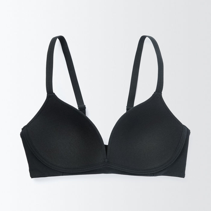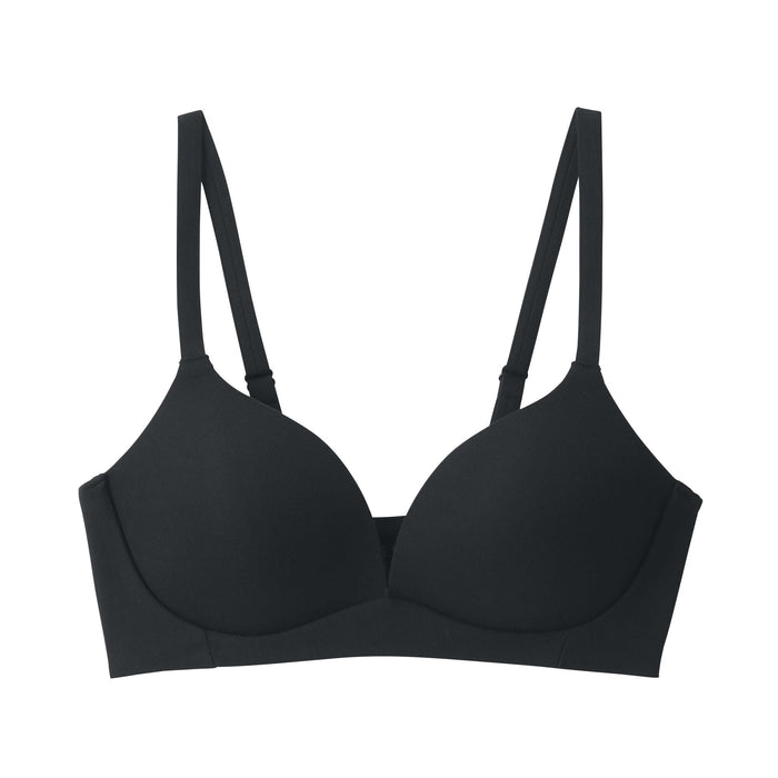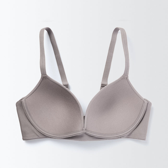 This wireless molded bra features a triangular cup that has been secured using a gluing technique, reducing the number of seams and resulting in a more secure fit. Made with a back clasp to prevent irritation.