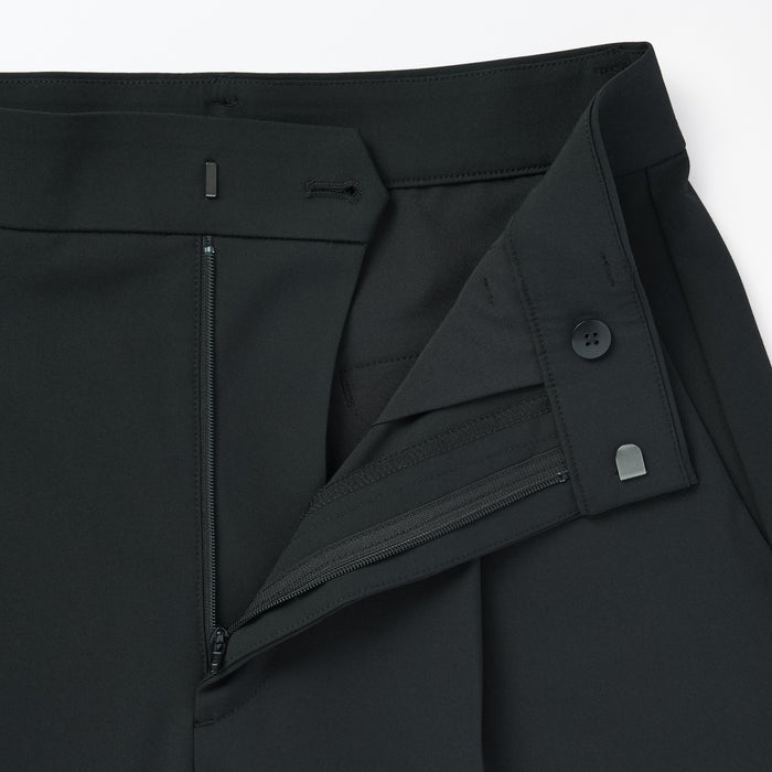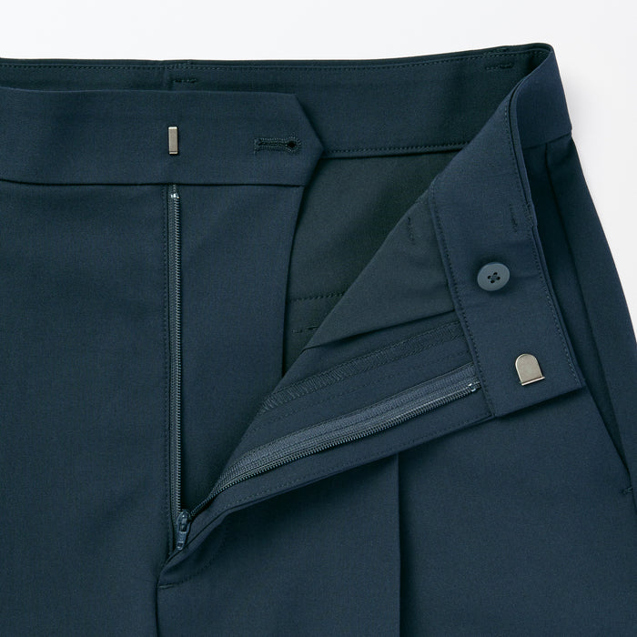 Pants with a comfortable straight silhouette, made of a water repellent material that resists creasing after washing. The front opening has a neat look that makes it also suitable for professional occasions.
