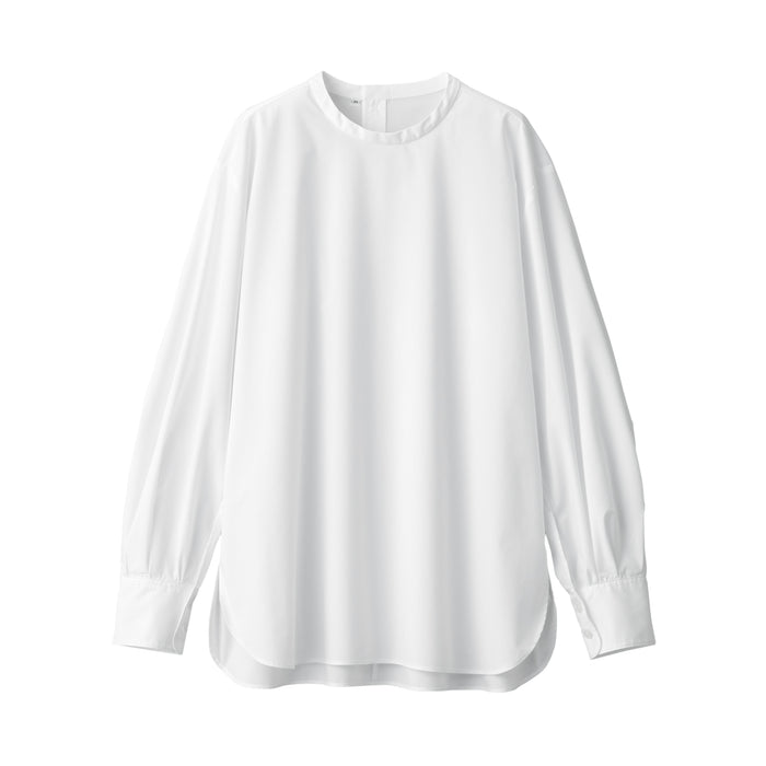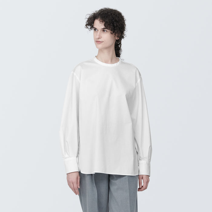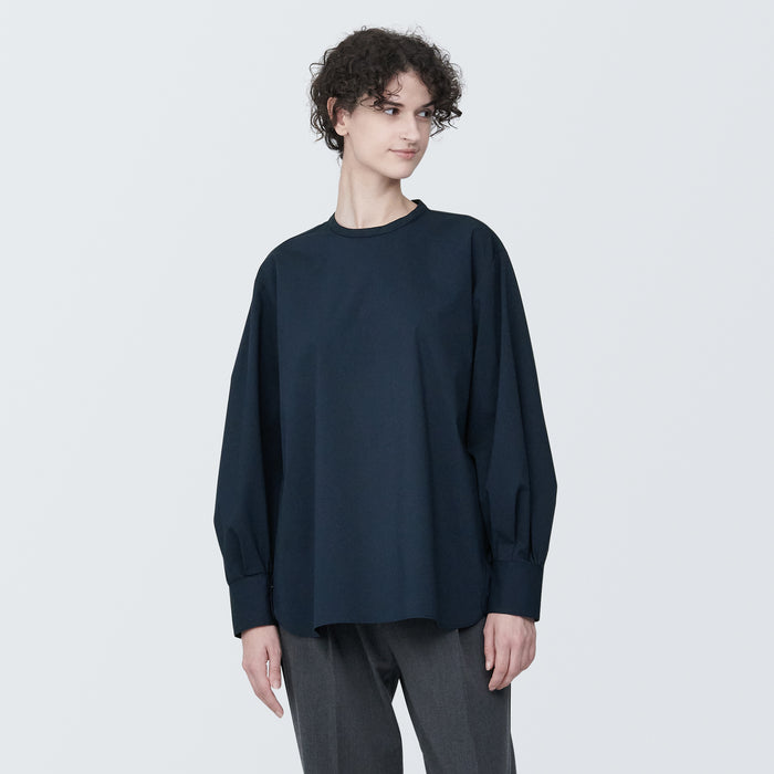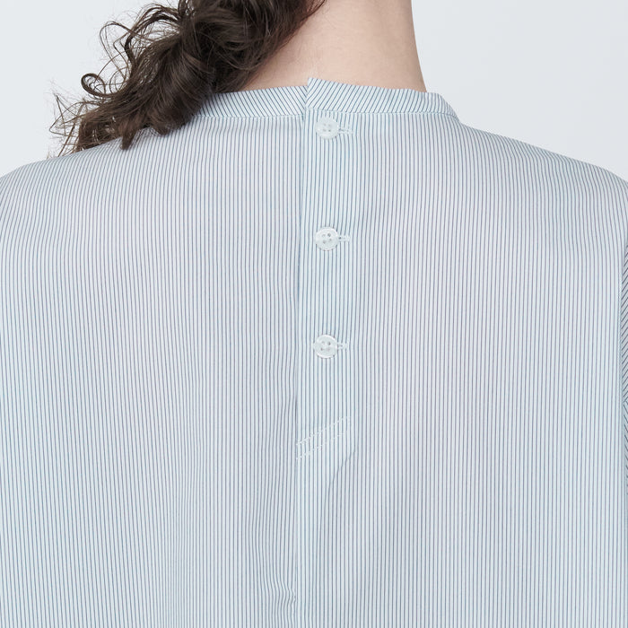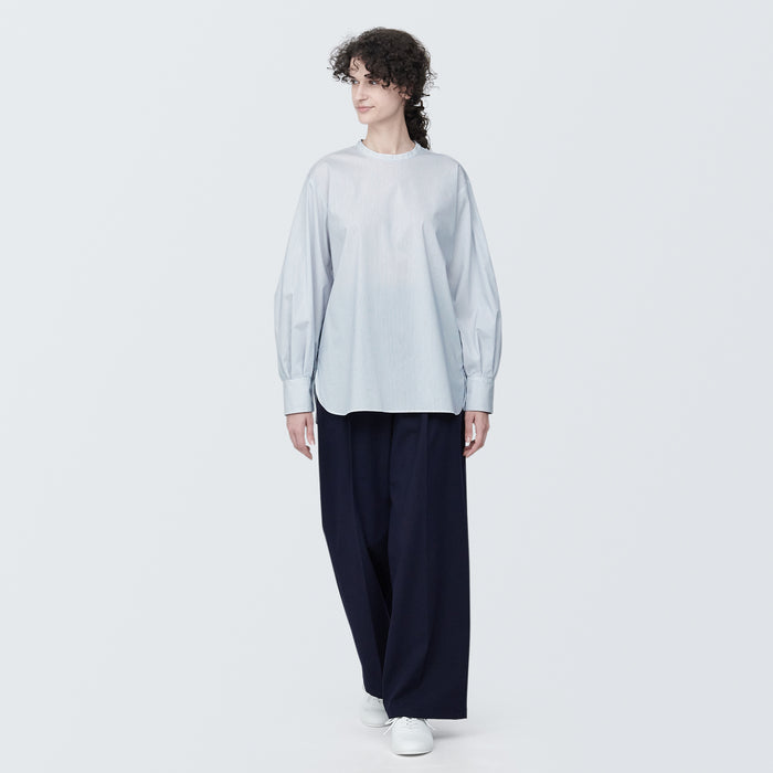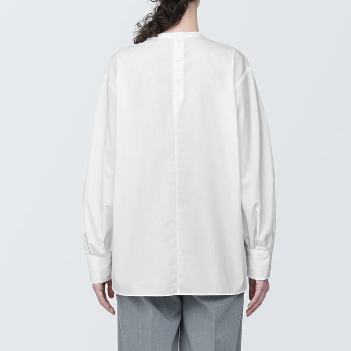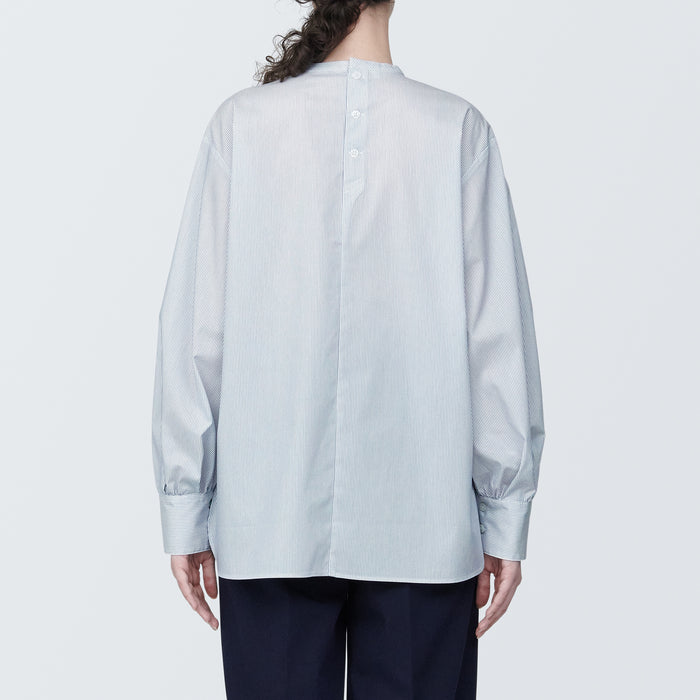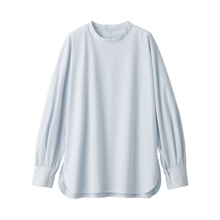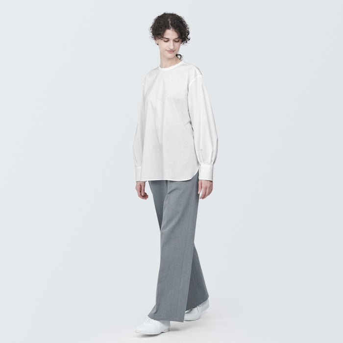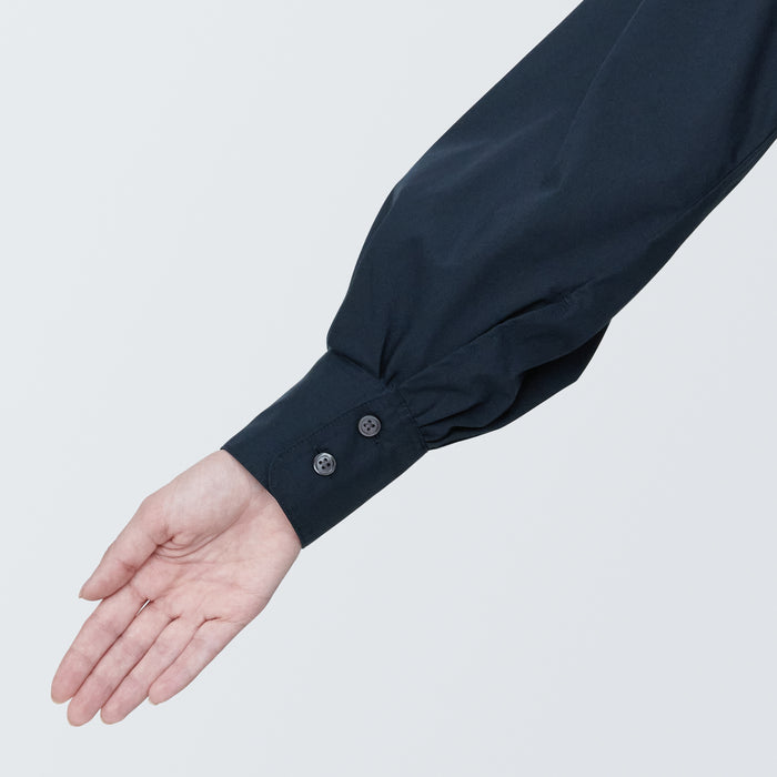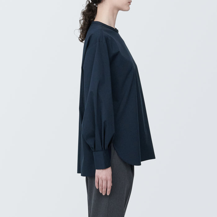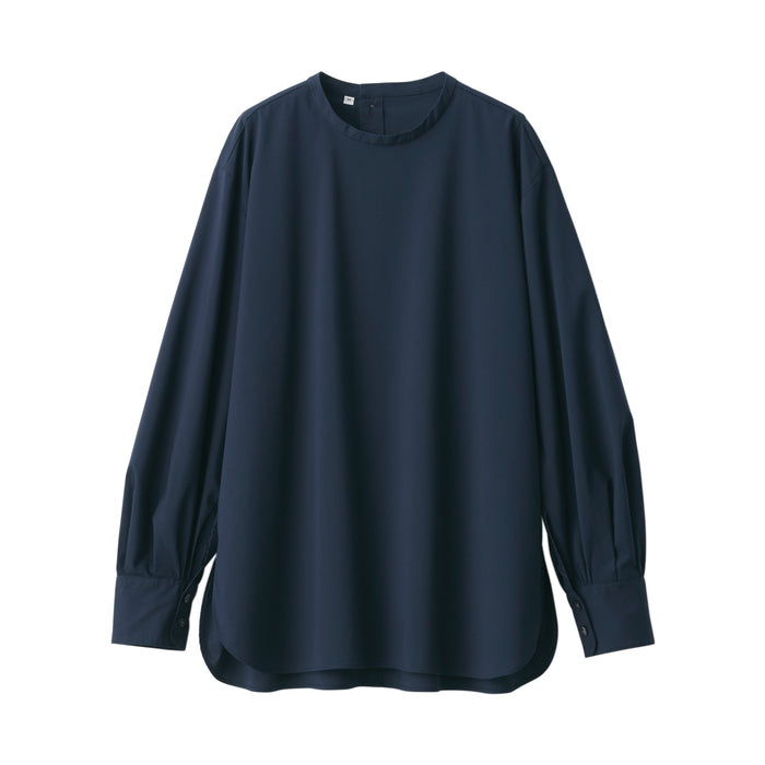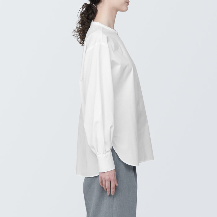 Women's Wrinkle Resistant Poplin Stand Collar Long Sleeve Blouse