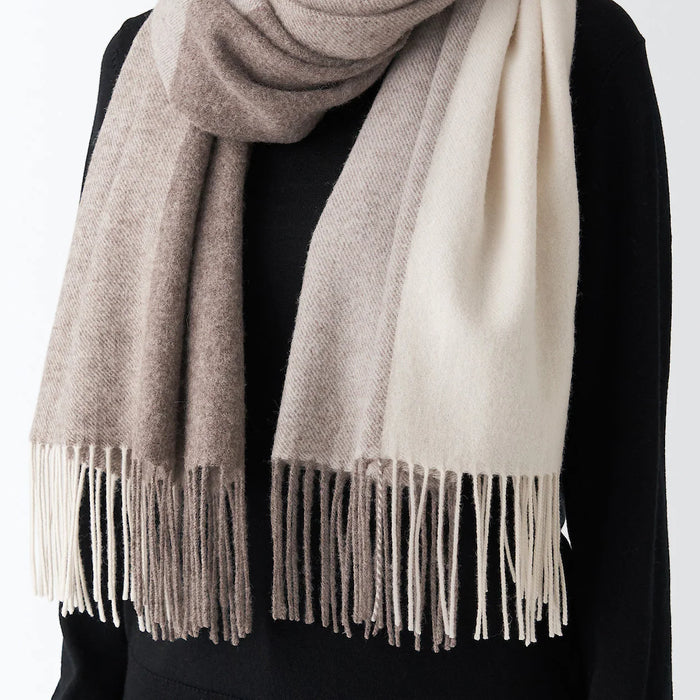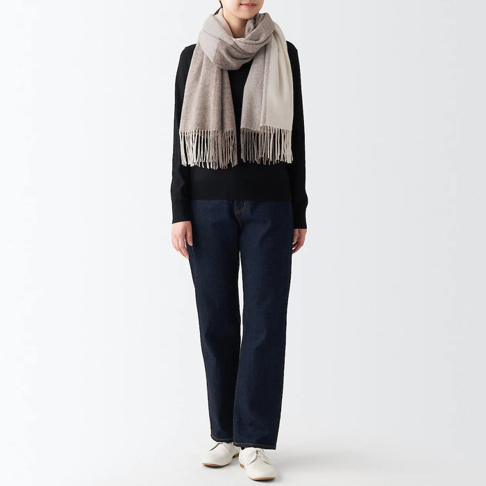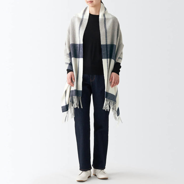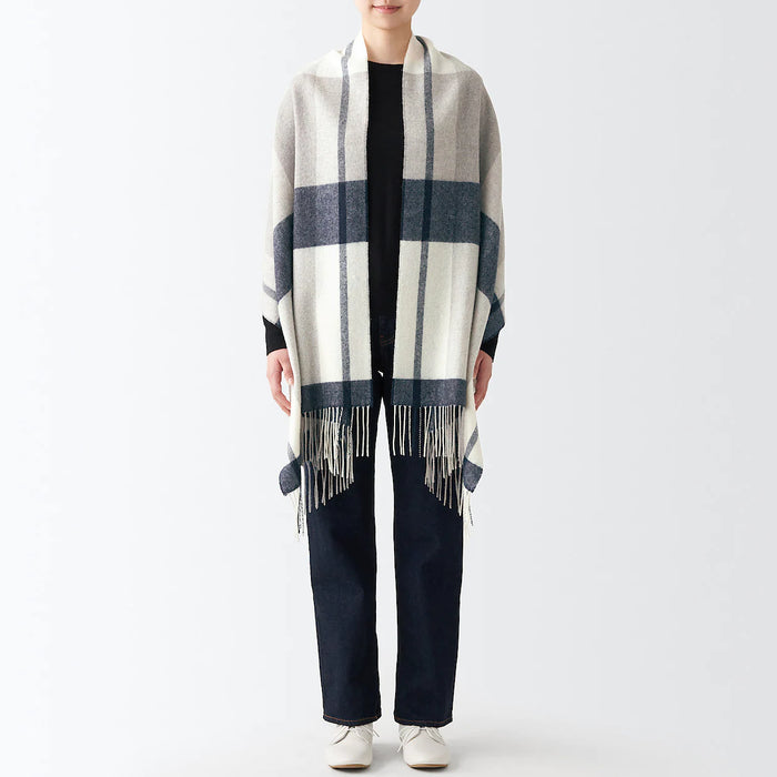 You can use the large stole in various ways! Wrap it around your neck, put it on your shoulders, or hang it on your knees when you feel cold.