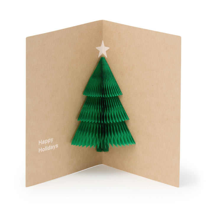 This simple but fun message card is perfect for the holidays! When opened, a pop-up tree made with honeycomb paper and the message "Happy Holidays" is revealed inside. Decorate the card however you like, then peel off the release paper from the motif and fit it in place. This set includes an envelope and message sticker.