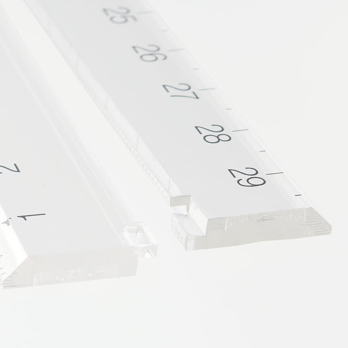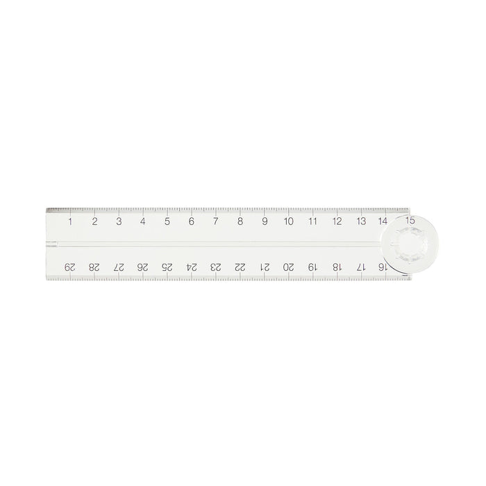 A clear ruler that goes up to 30cm(11.8"). Folds in half down to 15cm(5.9") for convenient storage and portability.