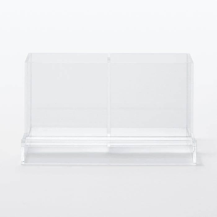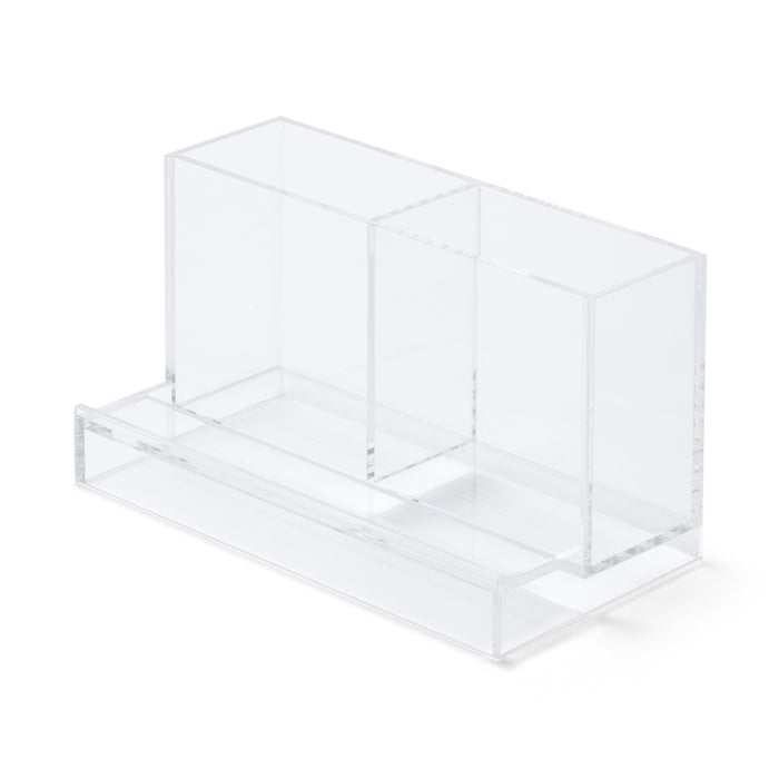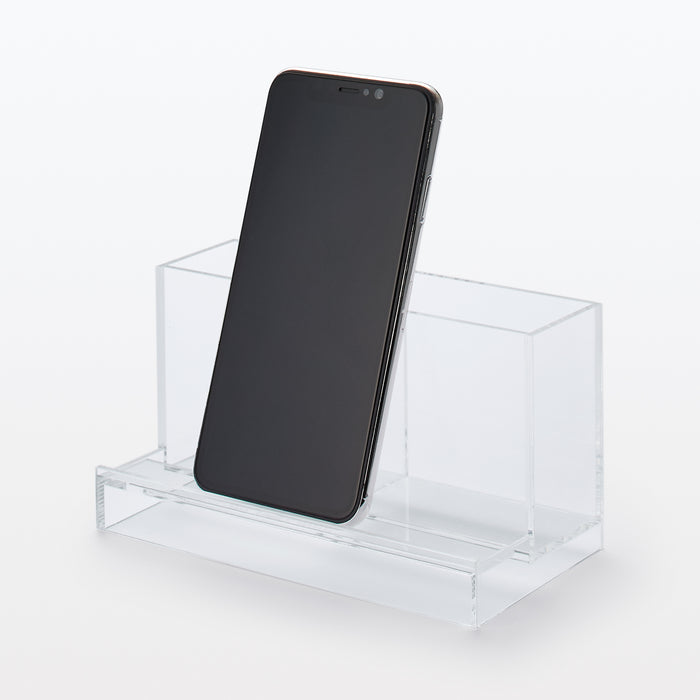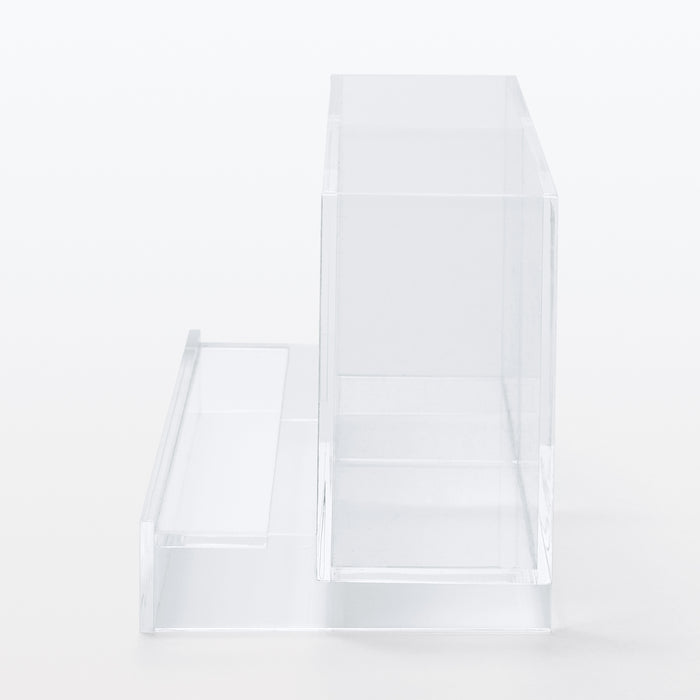 A transparent container for organizing your desk. Perfect for propping up a smartphone.