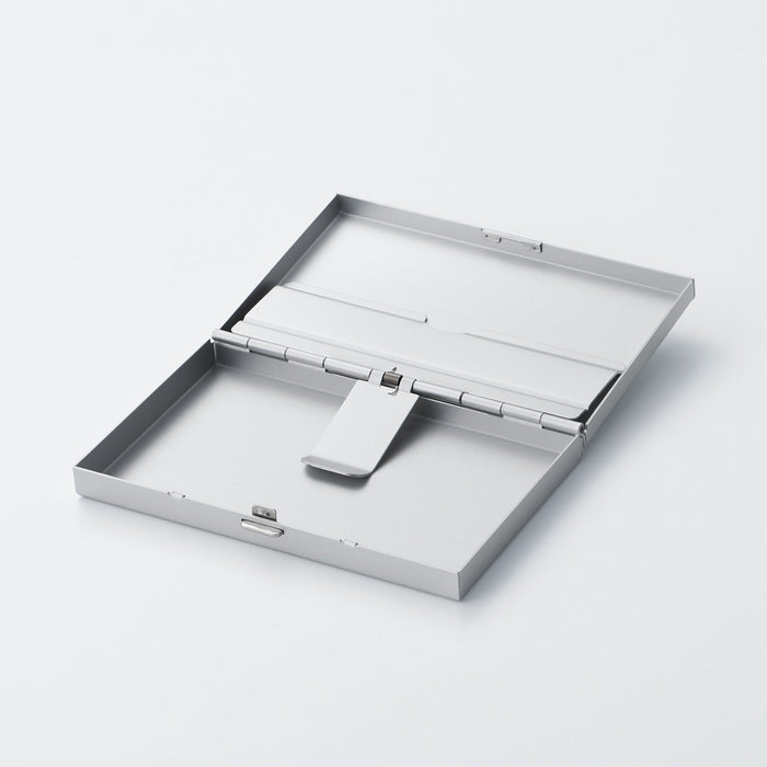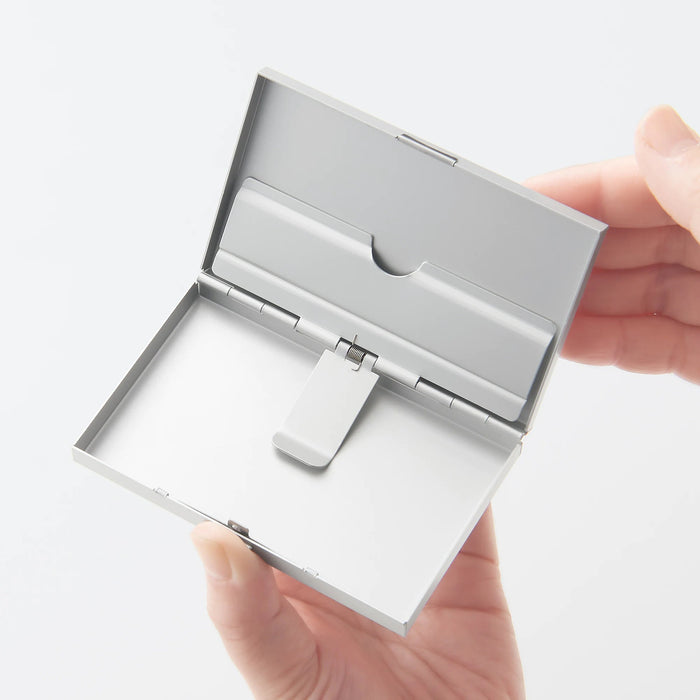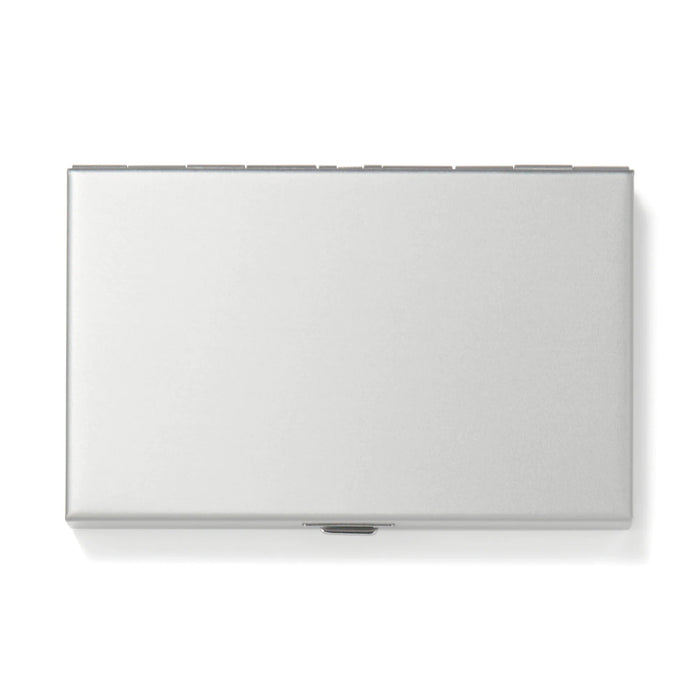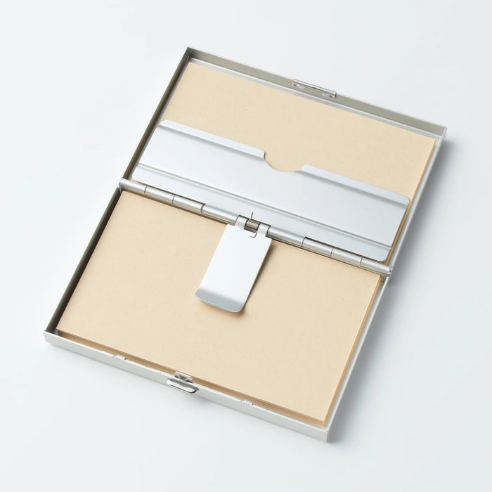 Lightweight, sturdy aluminum items for storing up to 40 business cards. Press the button to open it. With two different storage compartments for dividing different business cards.