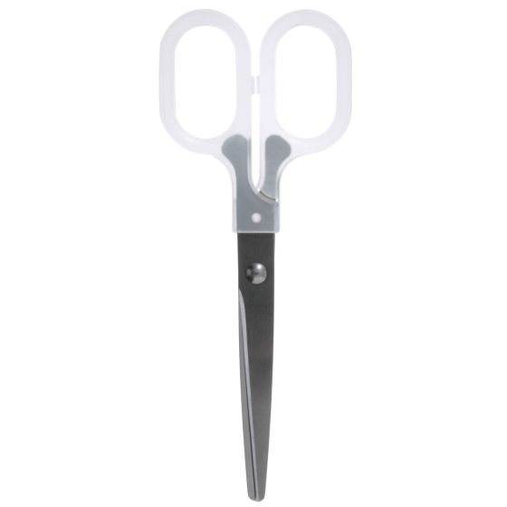 Simple, sharp scissors with a sturdy, clear handle.