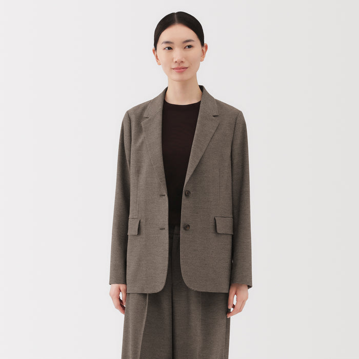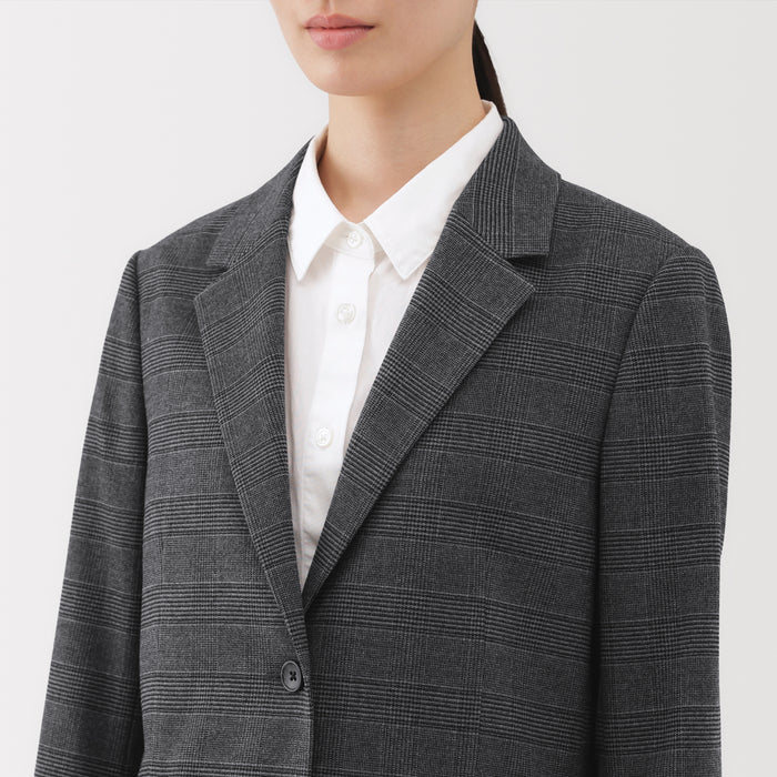 This jacket is made from a wool blend and brushed for extra softness and warmth, with a loose-fit silhouette that can easily be layered. The tailored cut elevates your look, offering sophistication and formality great for business casual occasions.