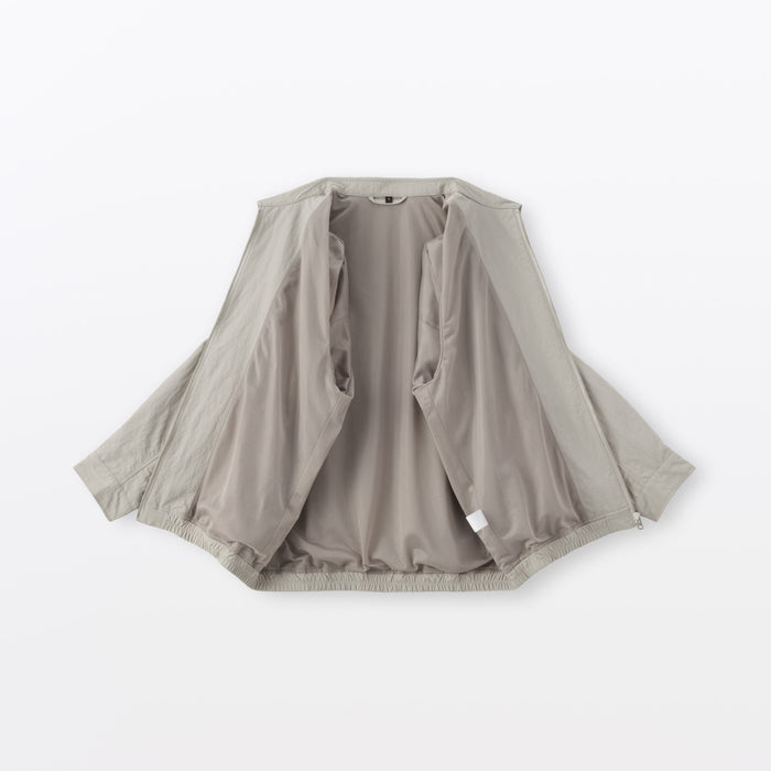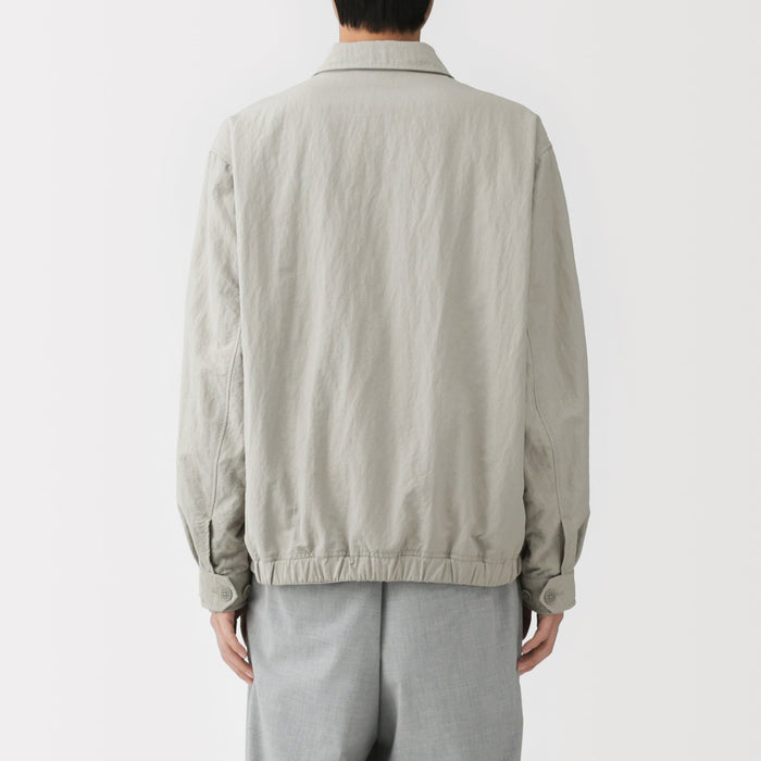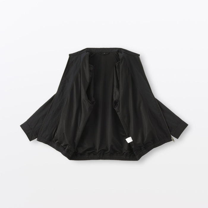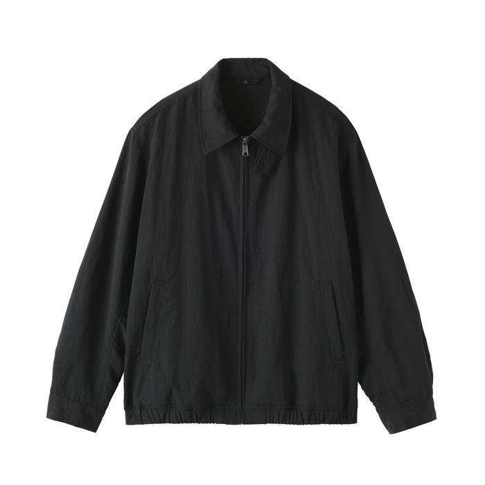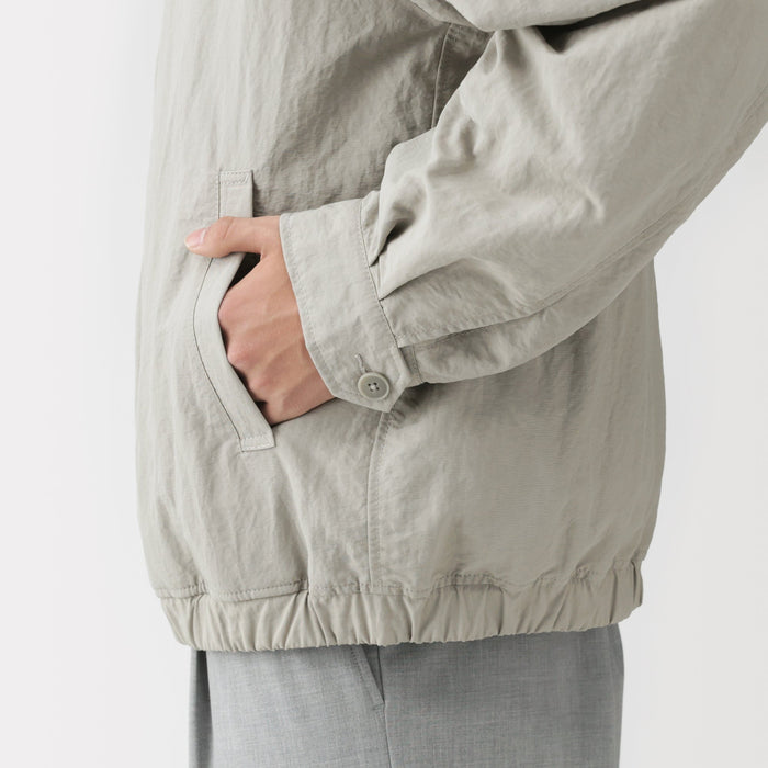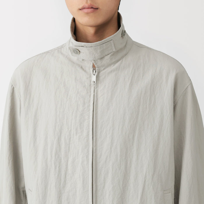 Perfect for rainy days, this men's zip-up jacket is made with a water repellent recycled nylon material. It fits loosely with a boxy silhouette, making it easy to layer over your outfit in wet and rainy weather and keep your clothes dry. The collar can also be secured with a button to stand up and protect your neck from wind. This is a versatile year-round choice for both men and women.
