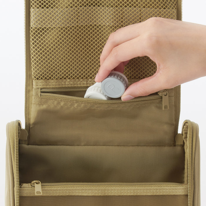 A hanging toiletry case perfect for travelling or maximizing small spaces. Simply hook this case onto an available surface and you can have all your essentials close by. Perfect height to fit MUJI 200mL skincare products.