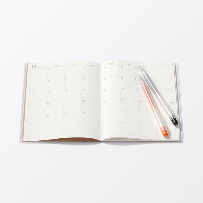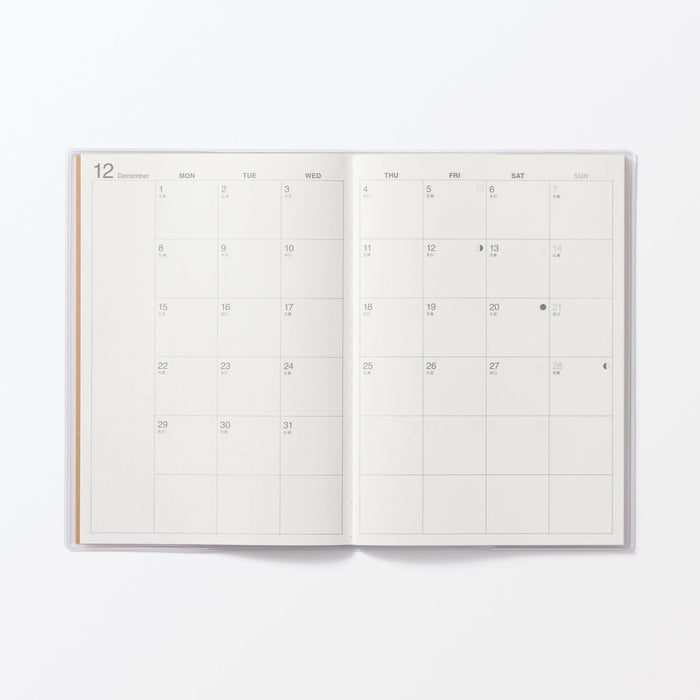 This monthly planner starts on Monday and includes 2-page monthly spreads with lined pages for notes. Comes with a vinyl cover to protect against light spills and debris.