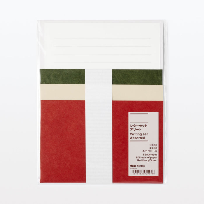 A set that includes a envelope and lined paper. The lines are wavy, giving the letter a soft impression when read. Comes with 1 Red, 1 Ivory and 1 Green Envelope.