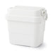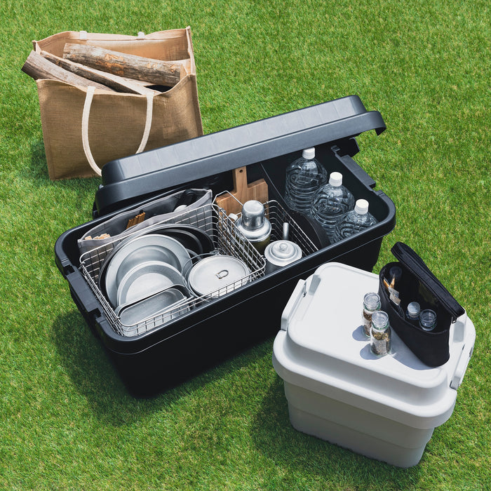 A sturdy and durable storage box that can be used both indoors and outdoors. The shape of the lid is designed so that it does not slip even when stacked and is easy to use as a table.