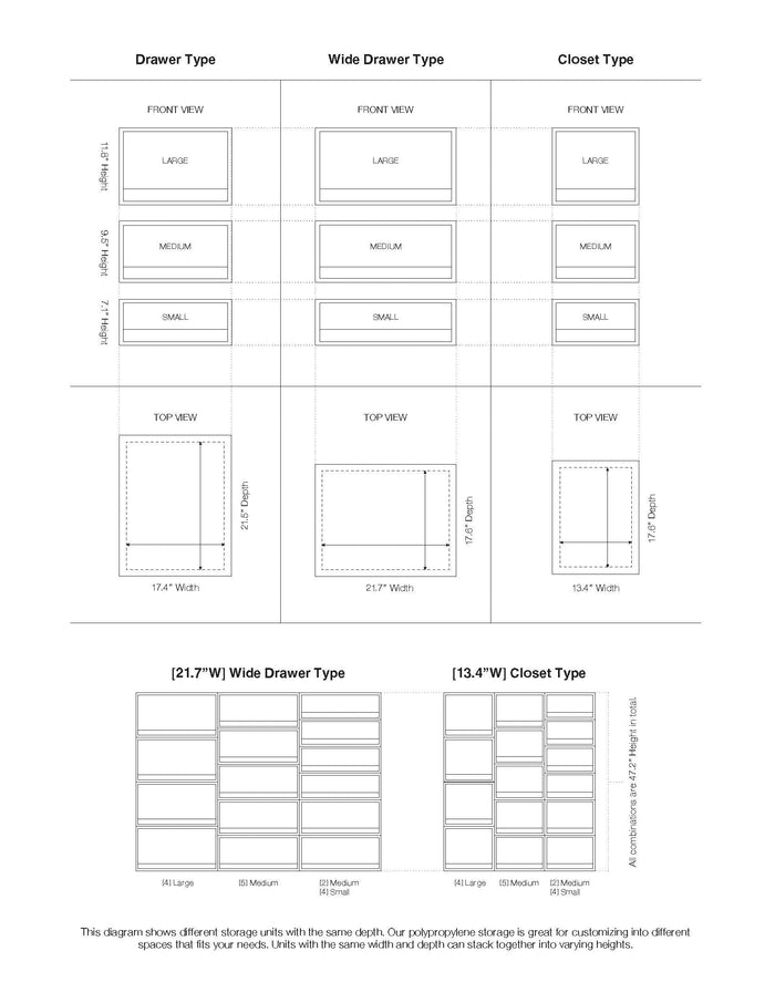 Left naturally uncolored, these wide storage drawers are made with plastic that is transparent enough to show what is inside for convenience. Combine deep, large, and small sizes for neatly organized storage units, customized to fit your space as needed.