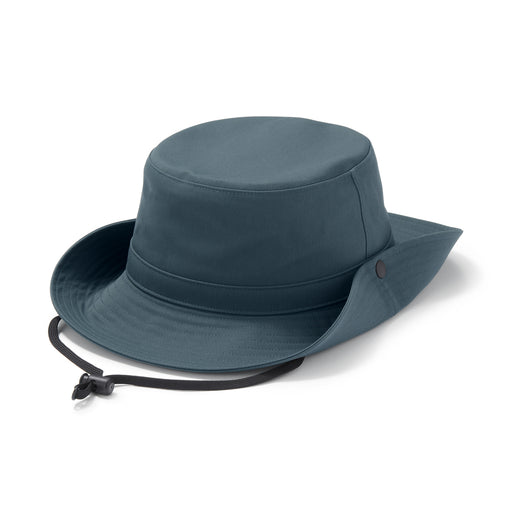A bucket hat made from water-repellent, moisture-wicking materials. A hidden adjustable strap allows the hat to adapt for a better fit.
