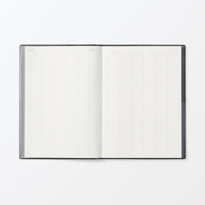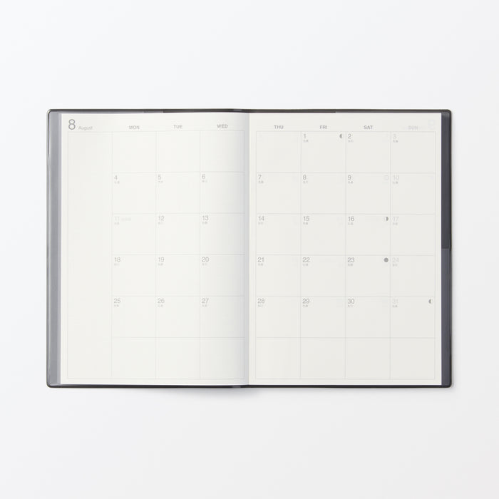 A5 Dark Gray Monthly/Weekly Planner From Aug. 2025 - Mon. Start