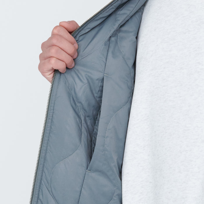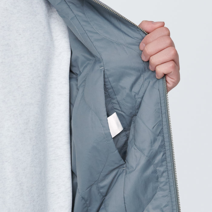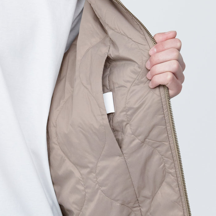 A bomber jacket-like made using a blend of natural, lightweight kapok fiber, cotton and polyester. Made with organic cotton.