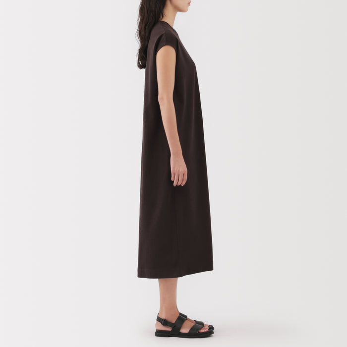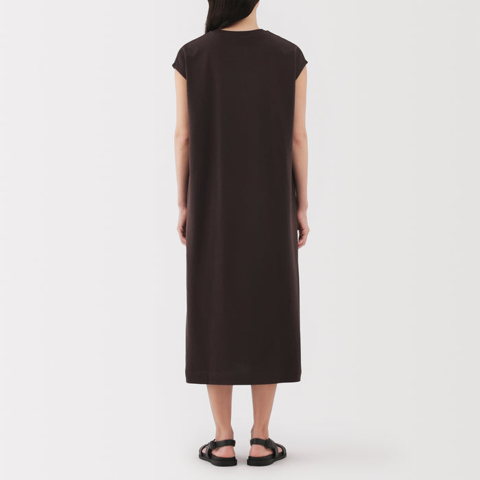 This dress features a 2-ply jersey knit design, with two strands of yarn intricately woven together to create a soft and moderately thick fabric.