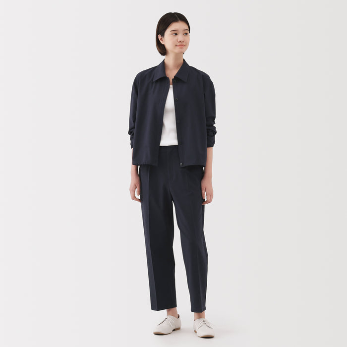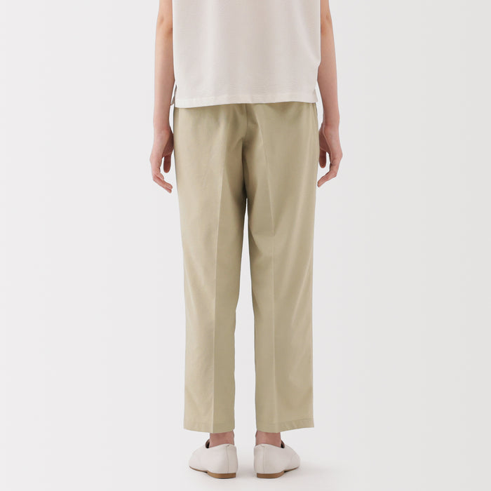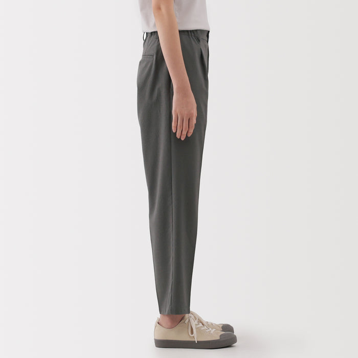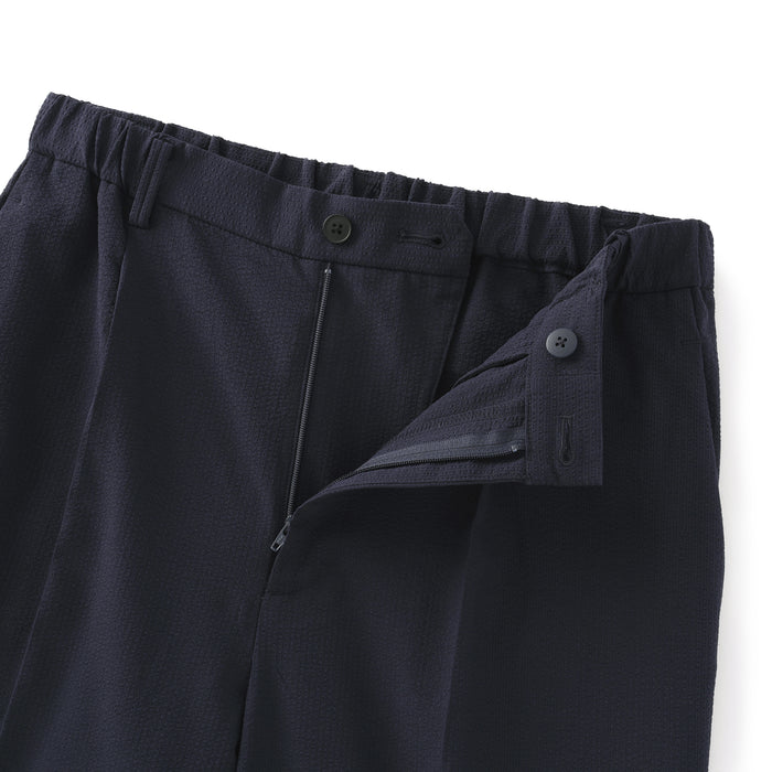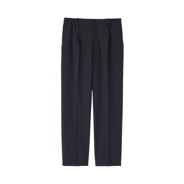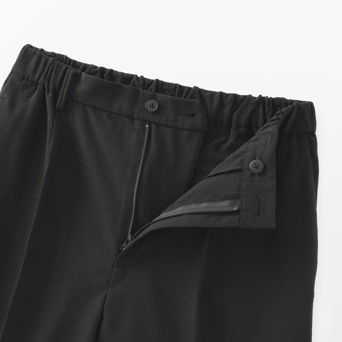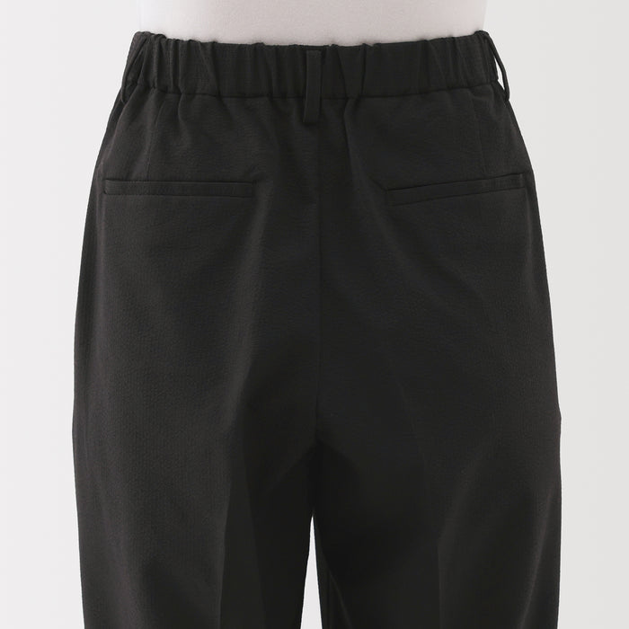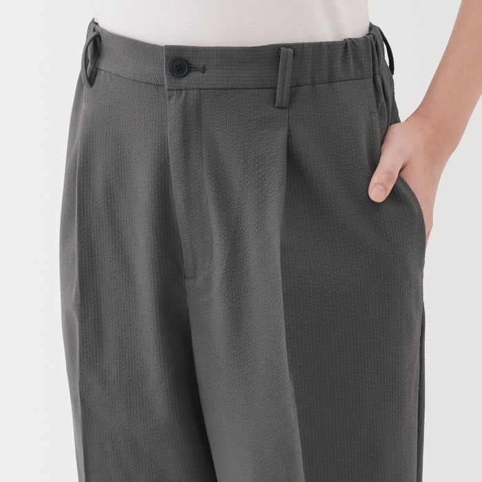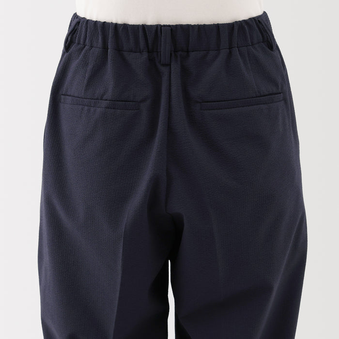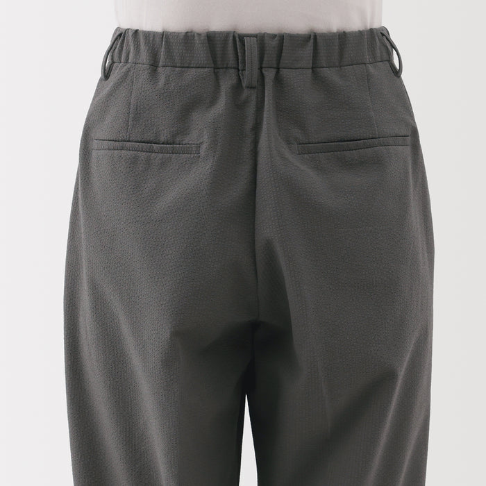 These stretch tapered pants are made with a cool, airy seersucker material with tiny ventilation holes created through special processing for breathability. It is designed with a roomy silhouette that is breezy and comfortable to wear on hot days. The material is slightly stretchy, so it is easy to move around without restriction. Features an adjustable drawstring in the waistband for the perfect fit.