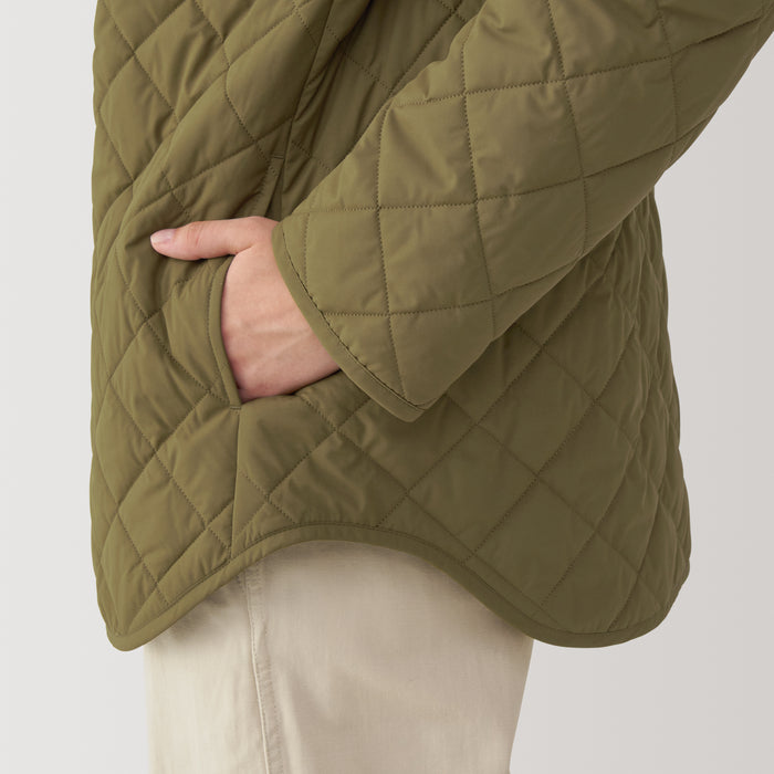 A water repellent padded quilted jacket that will keep you warm and dry in the winter. Partly made from raw, plant-based materials and recycled polyester and nylon. Machine washable for easy and convenient care at home.