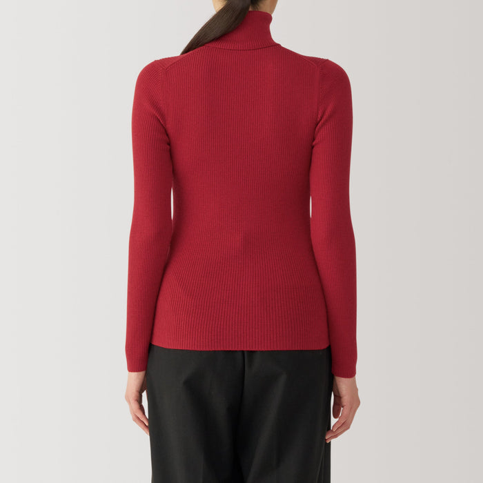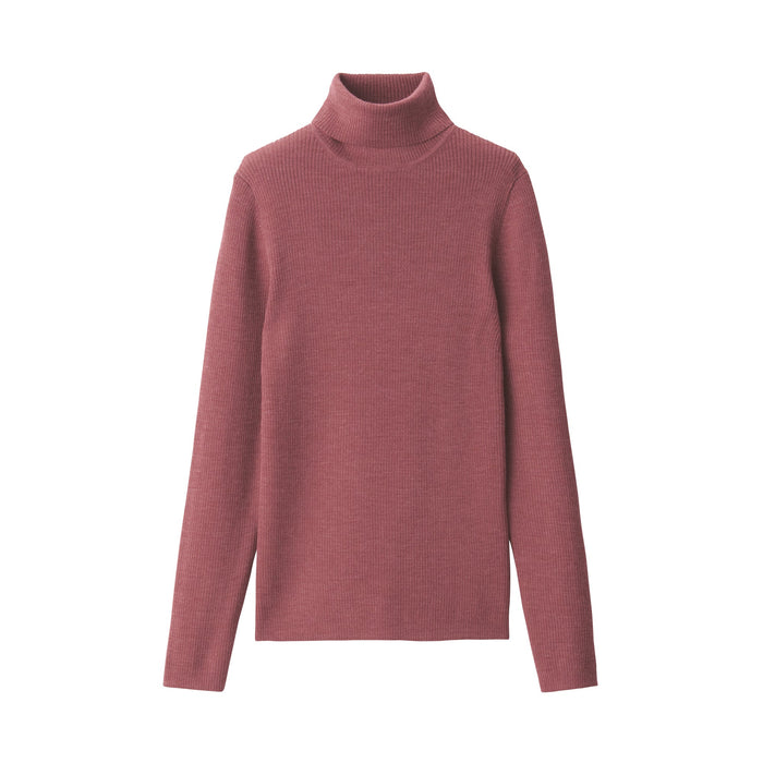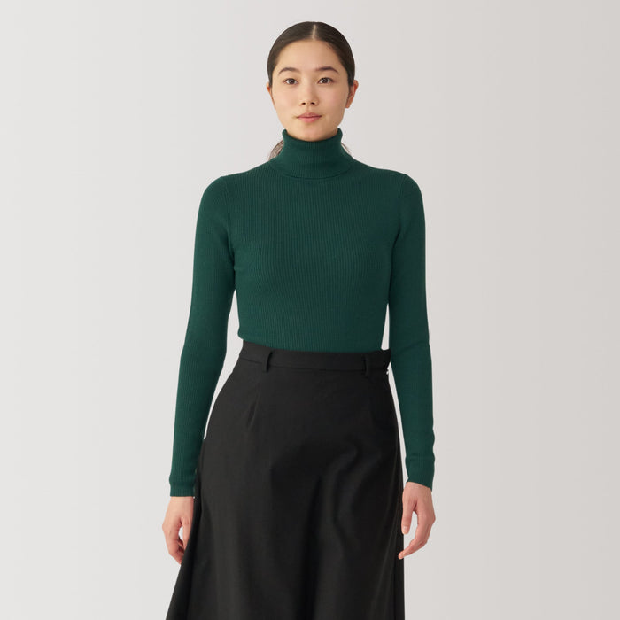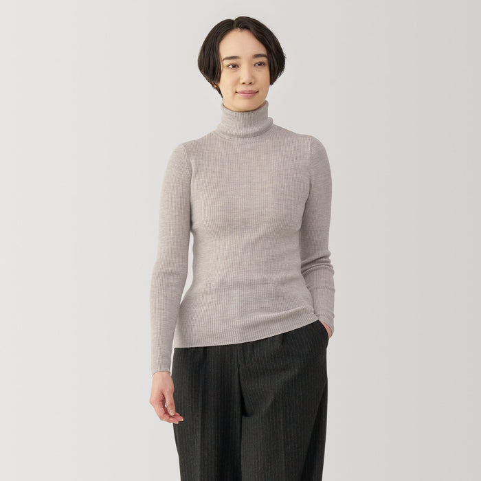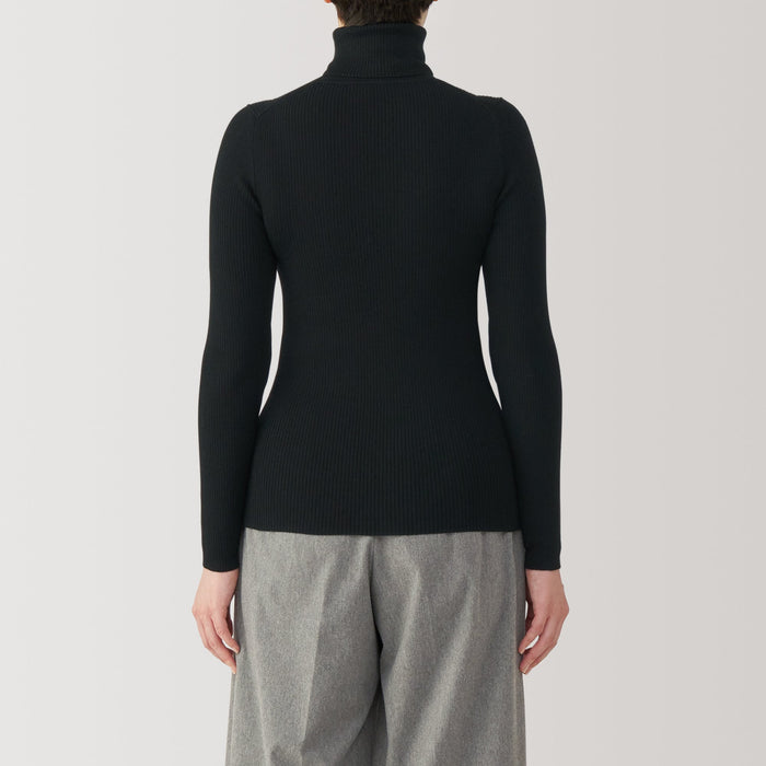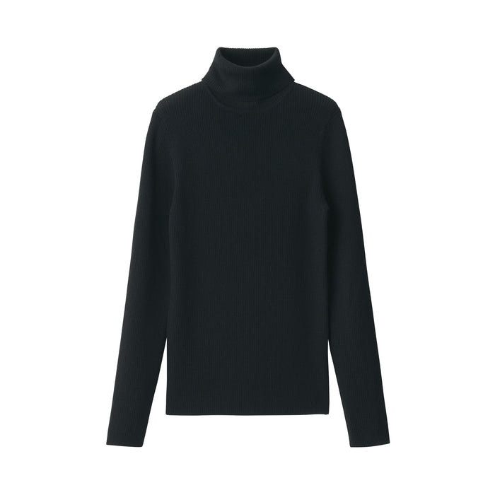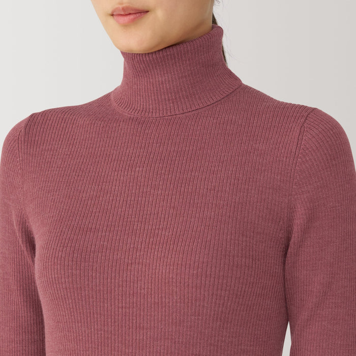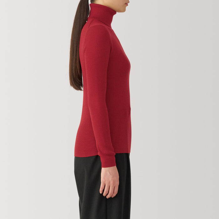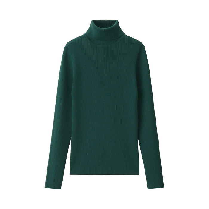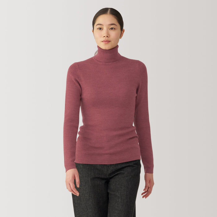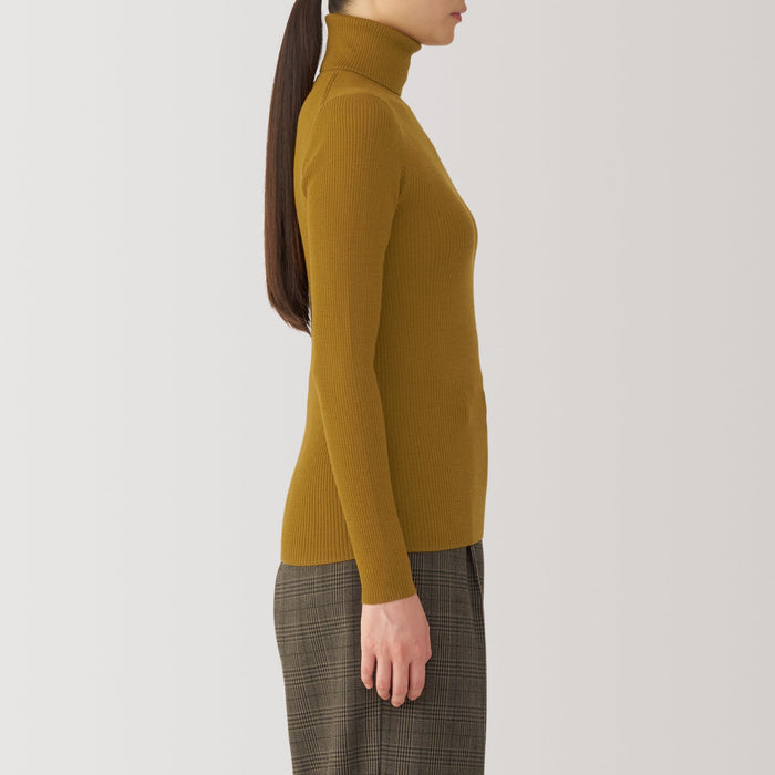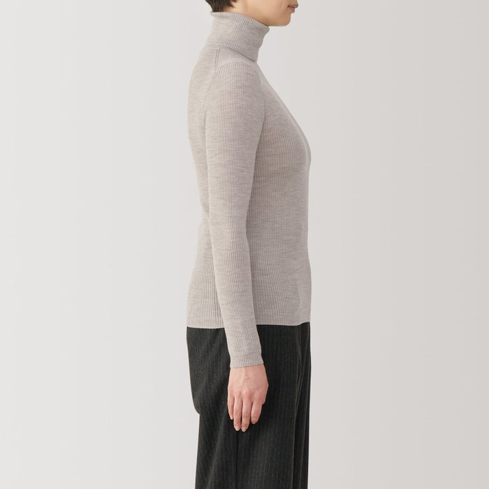 A turtleneck sweater made of warm wool, with an extra soft texture for comfort around the neck and reducing itchiness. Machine washable for convenient care at home.