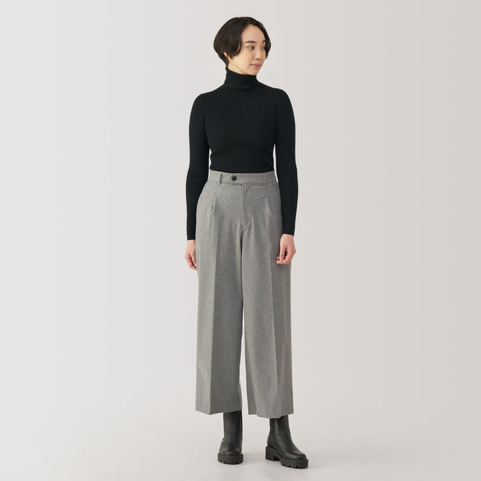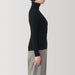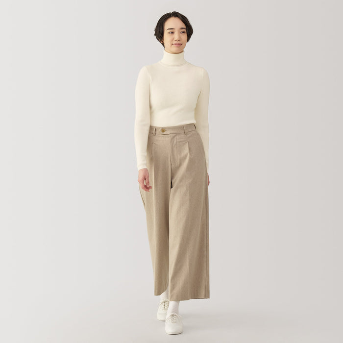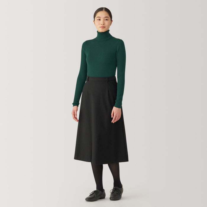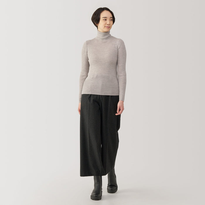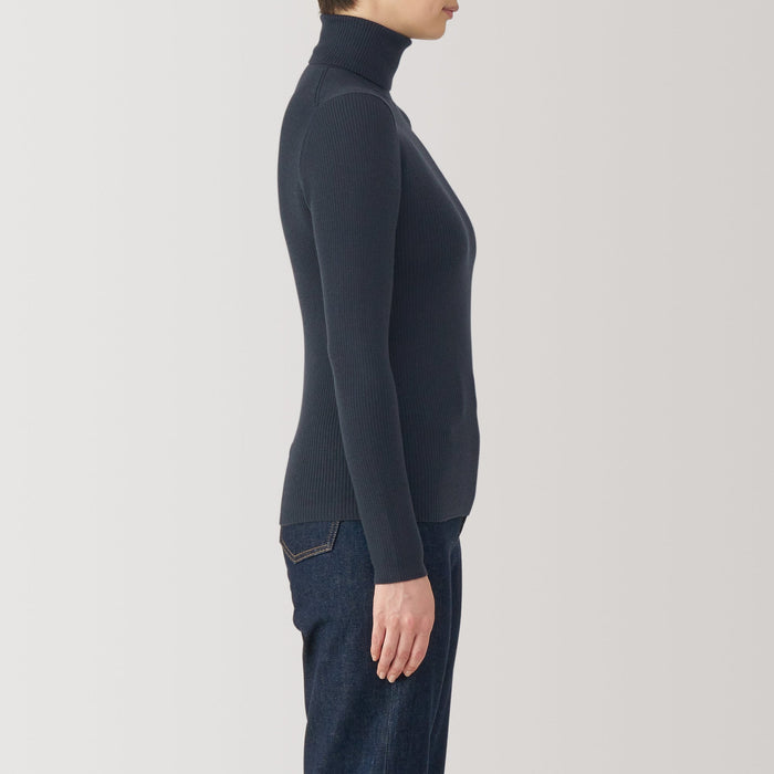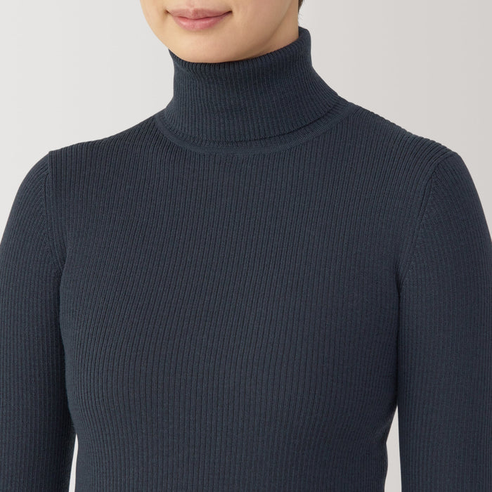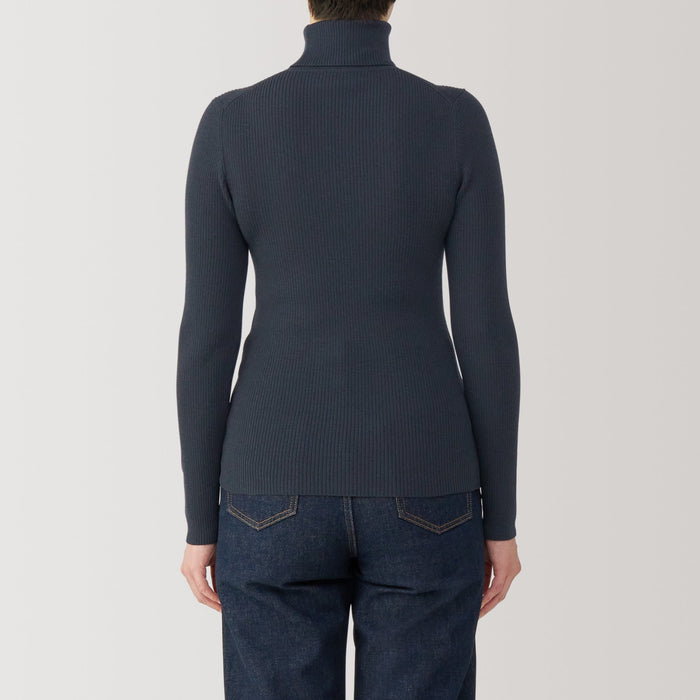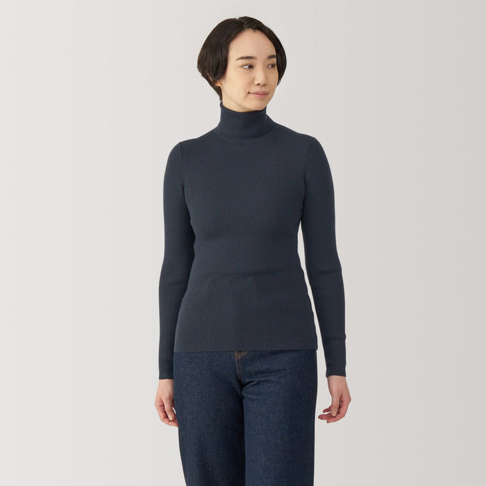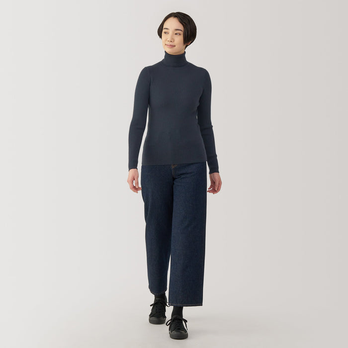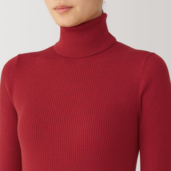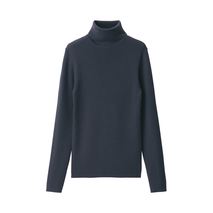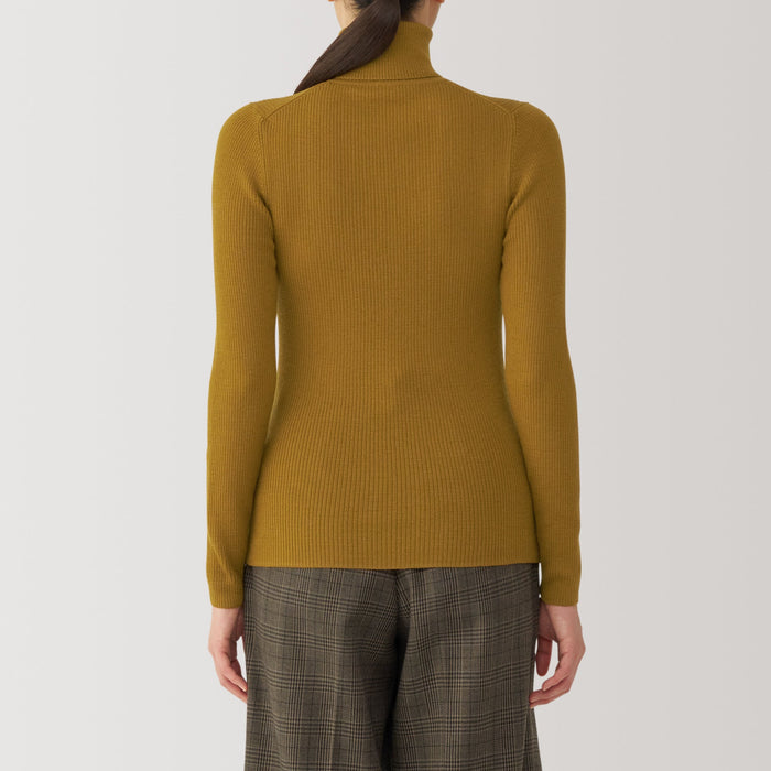 A turtleneck sweater made of warm wool, with an extra soft texture for comfort around the neck and reducing itchiness. Machine washable for convenient care at home.