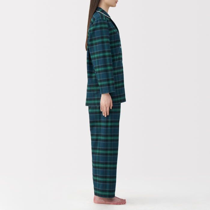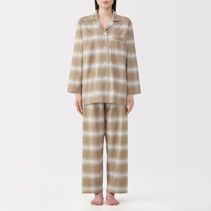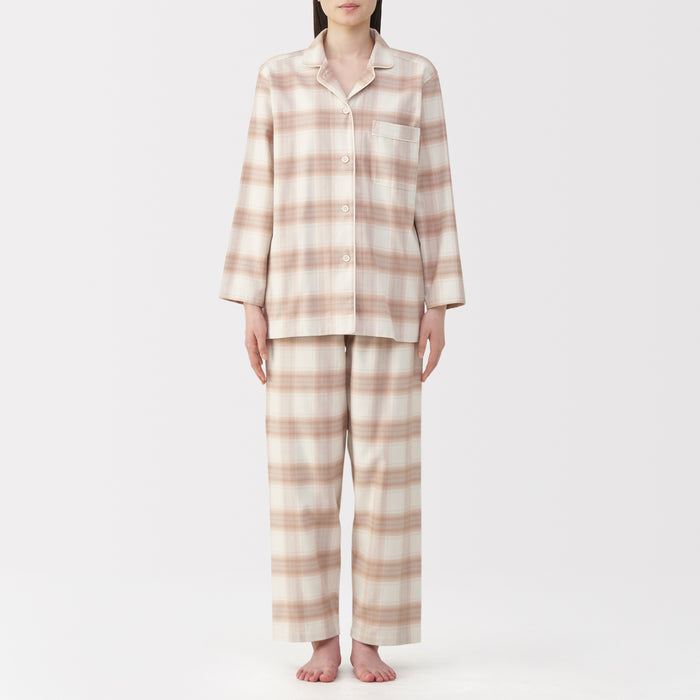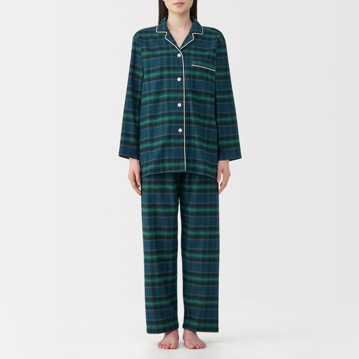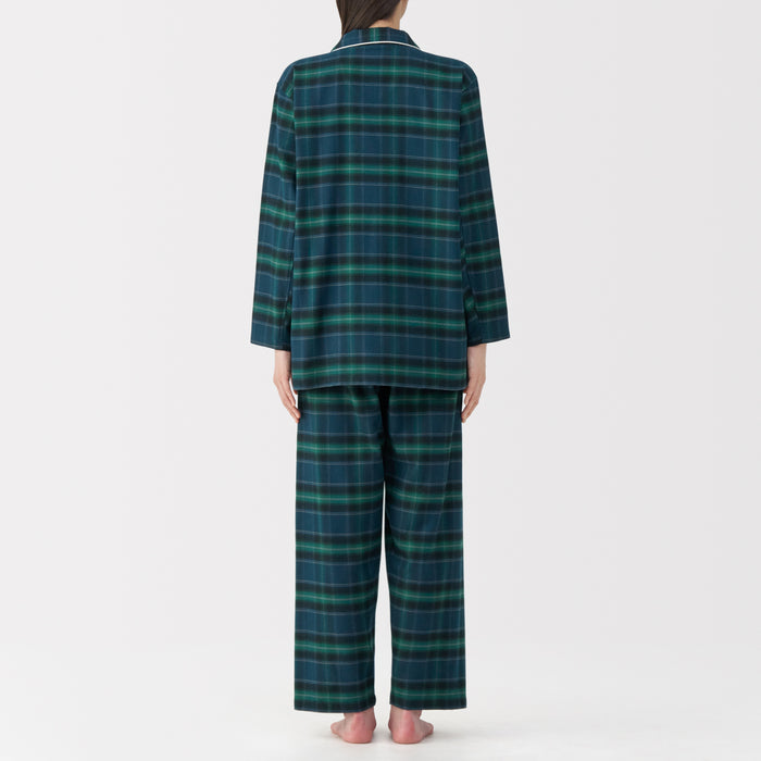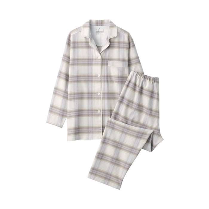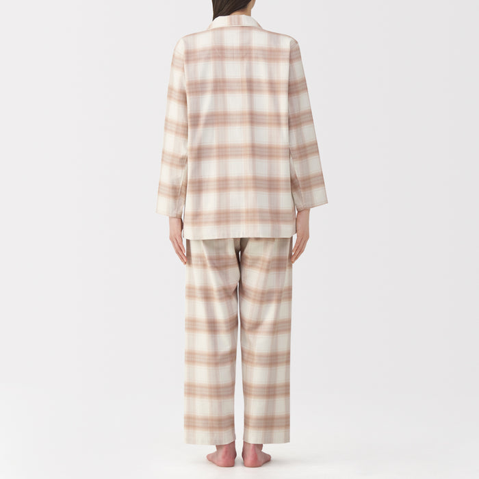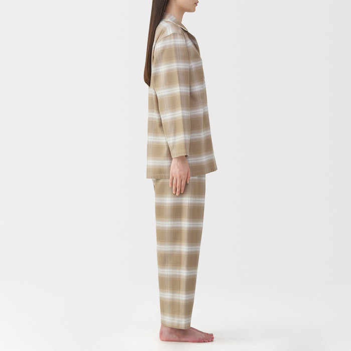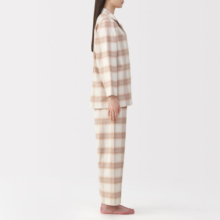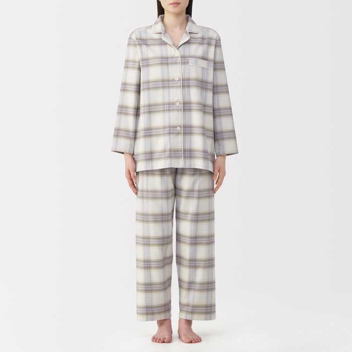 This comfortable women's flannel pajama set is made from organic cotton with a brushed surface for an incredibly soft and warm feel on your skin. The loose, relaxed fit ensure that you won't feel restricted. These pajamas are designed with side seams removed to prevent irritation and friction for a more enjoyable sleep.