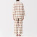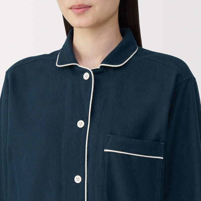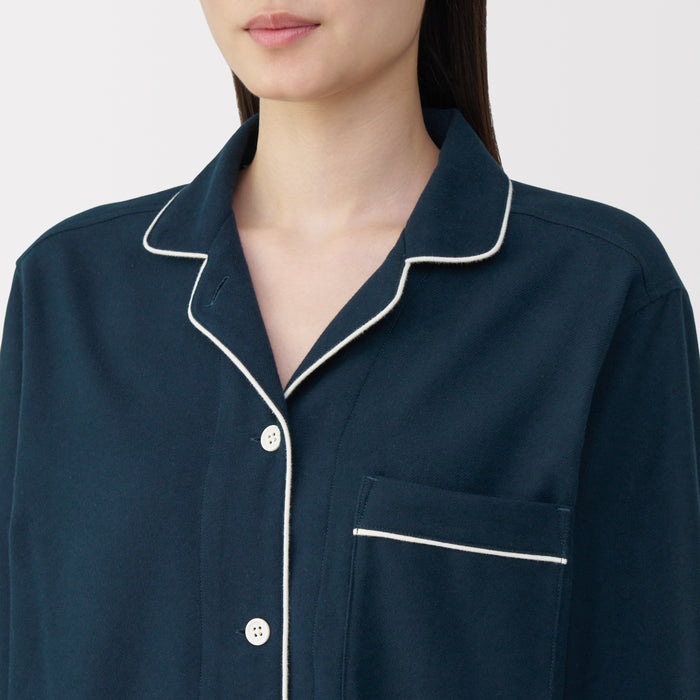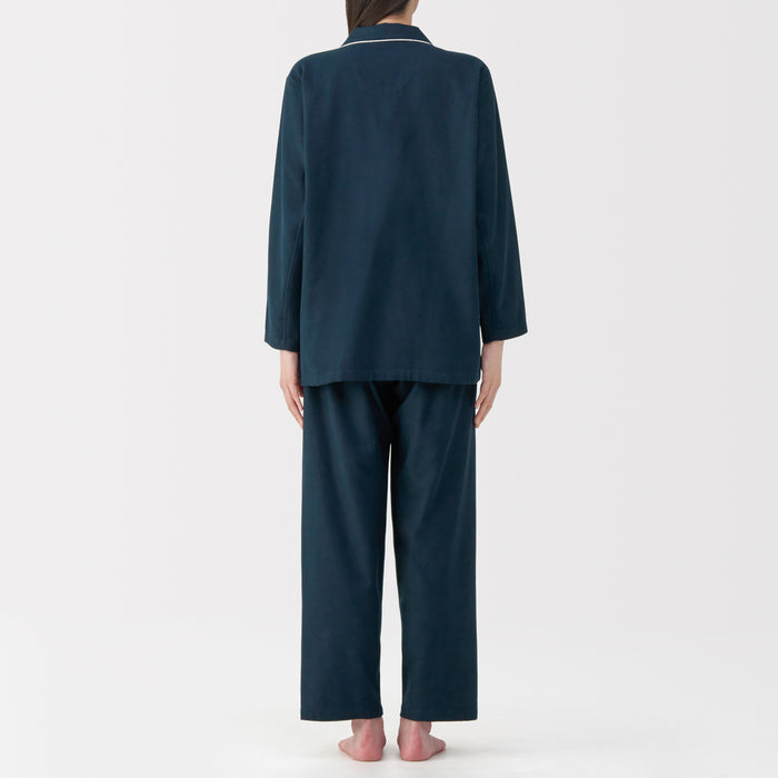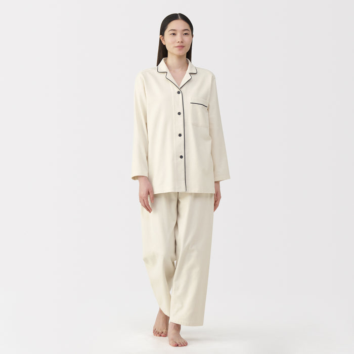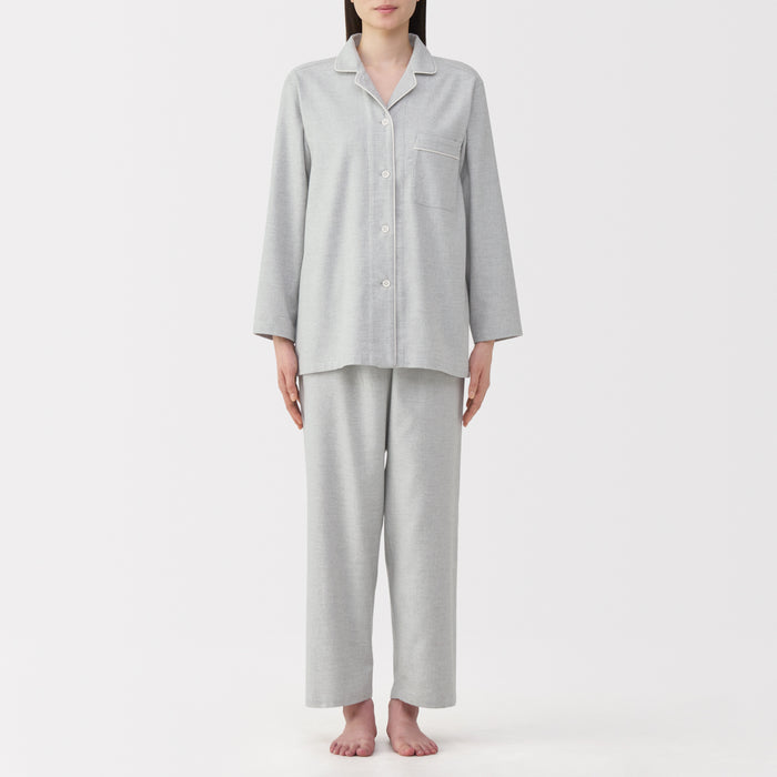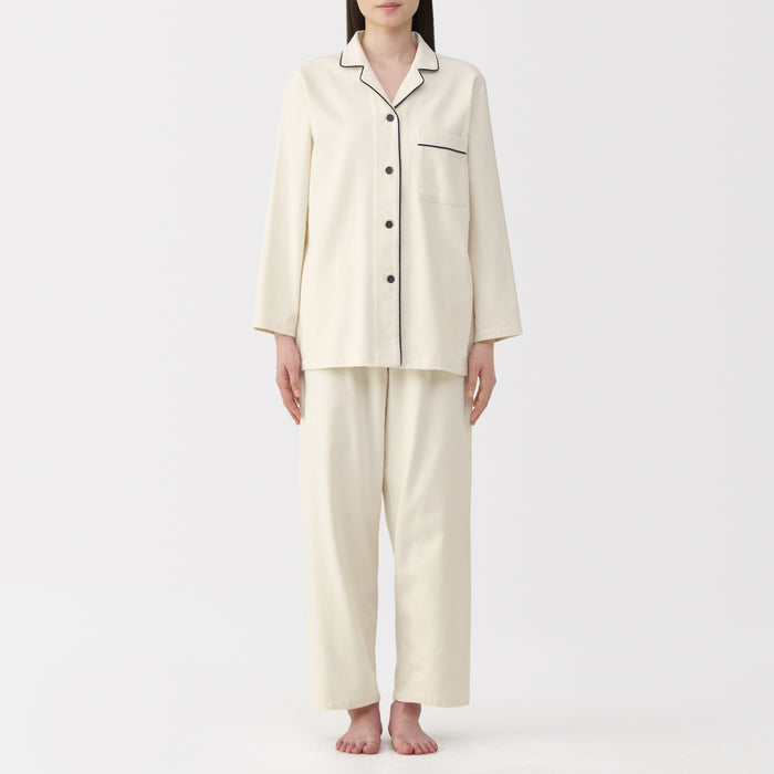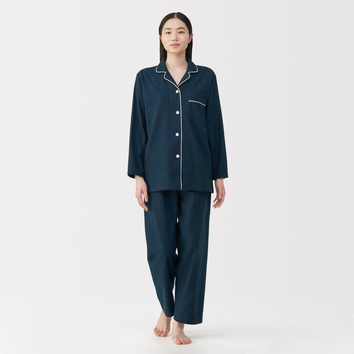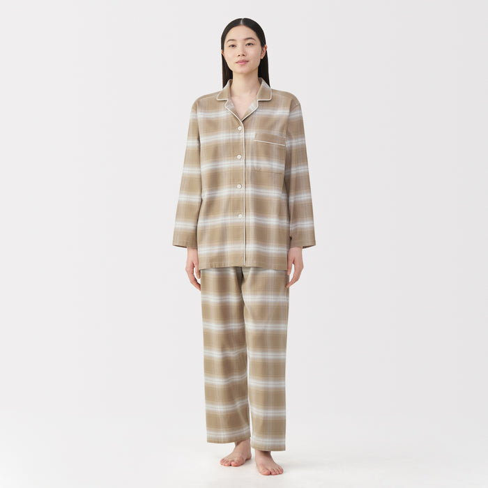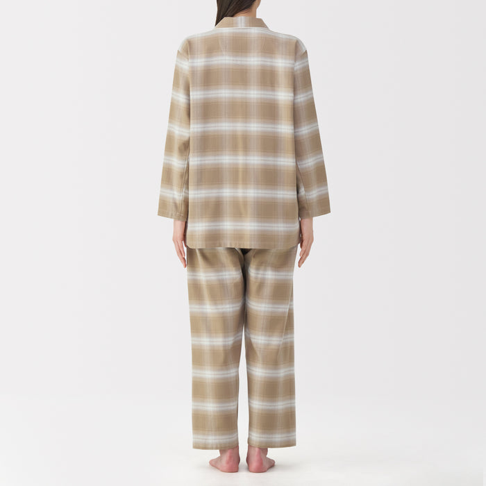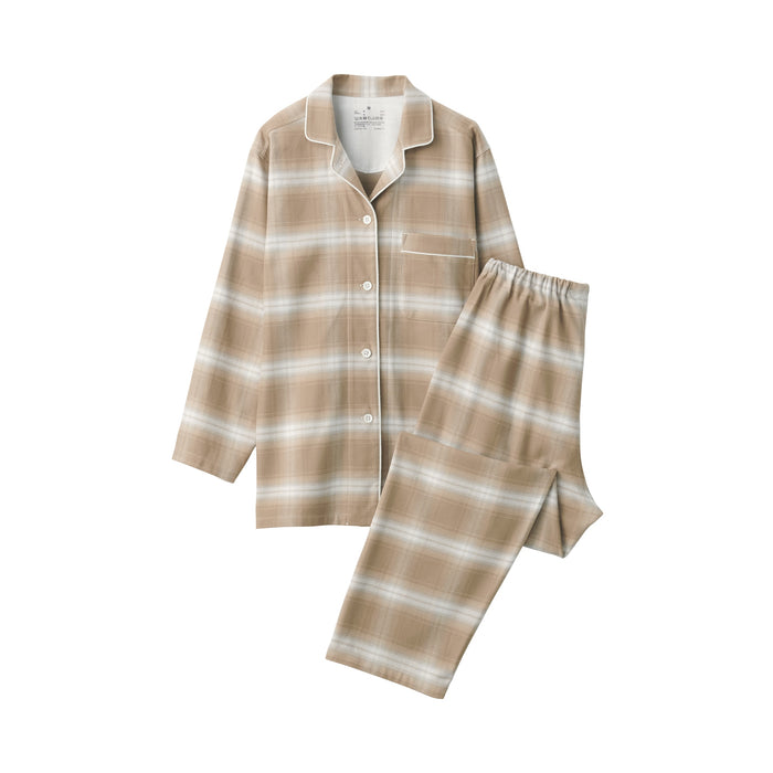 This comfortable women's flannel pajama set is made from organic cotton with a brushed surface for an incredibly soft and warm feel on your skin. The loose, relaxed fit ensure that you won't feel restricted. These pajamas are designed with side seams removed to prevent irritation and friction for a more enjoyable sleep.