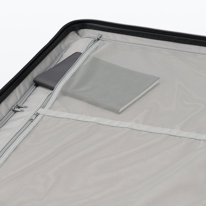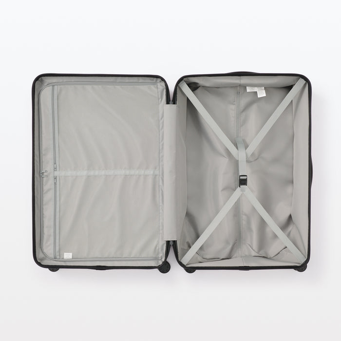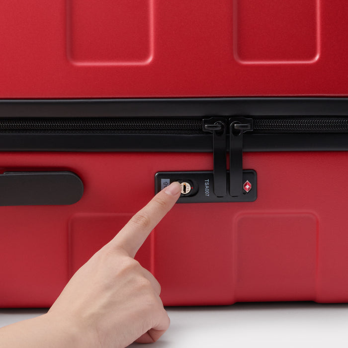 A suitcase featuring a wheel stopper function and a handle that can be easily adjusted. The material has been reviewed and the weight has been lightened from previous models, allowing you to carry more. It adopts a twin-wheel caster which runs quietly and smoothly. A TSA-approved lock is built in, so you can have peace of mind that airports won't need to break a padlock on your bag if they have to check inside.