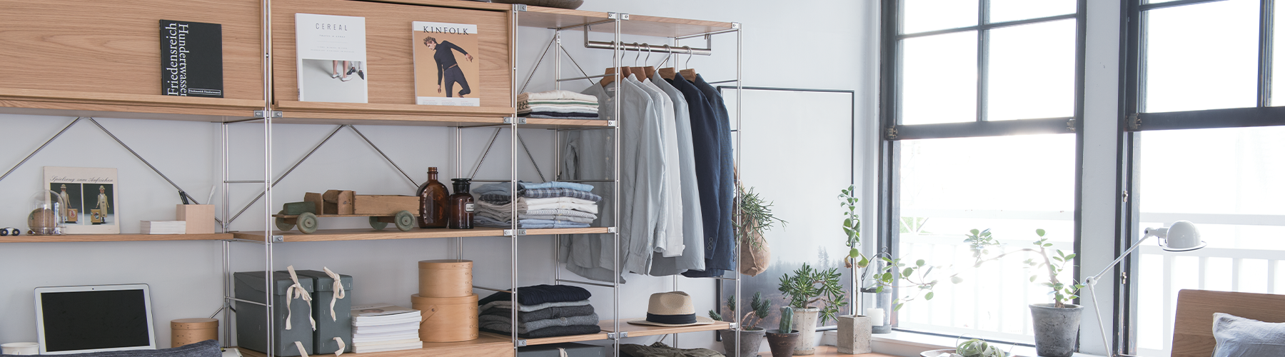The beautiful pine wood turns into a delicious amber color by the time you use it. Given many knots in the grain, our pine shelving units create a richly expressive and warm atmosphere. Select the height and width of the shelves and build your own storage system.