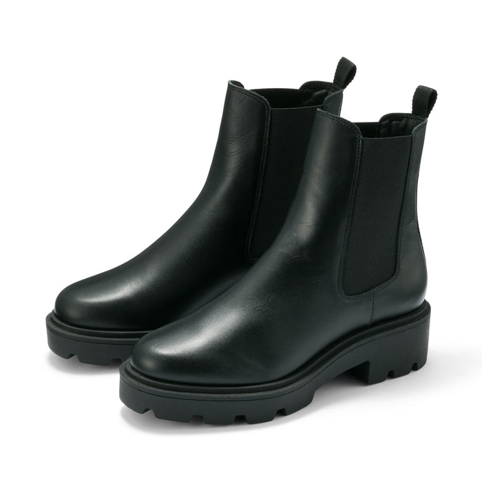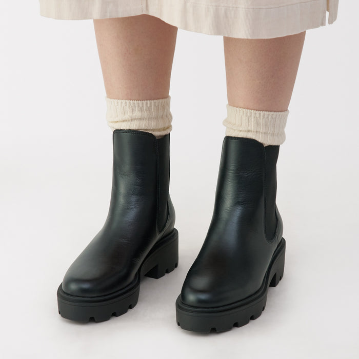 Sleek and stylish Chelsea boots made from cowhide leather. Designed with thick soles for comfortable walking and a bit of extra height. The elastic panels on the sides make them easy to slip on and take off.