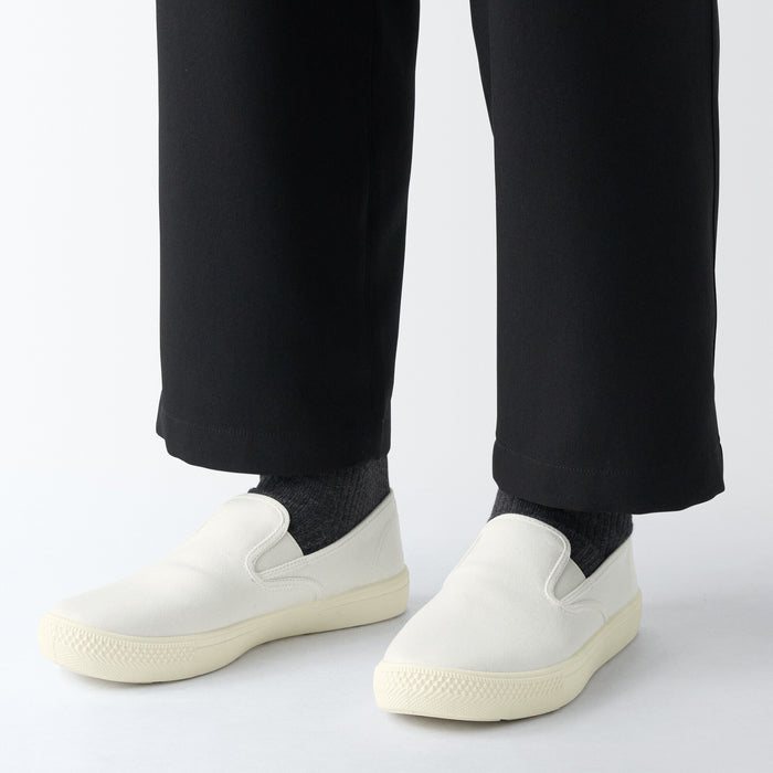 Comfortable and casual canvas slip-on sneakers with a cushioned insole for all-day support. Made with organic cotton, the fabric is treated with a water-repellent finish making these shoes suitable for rainy days.