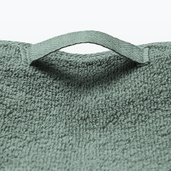 This towel's soft and fluffy pile weave has strong absorbency, ideal for drying wet hands, washing your face or wiping off sweat. There is a loop in the corner that lets you hang it easily.