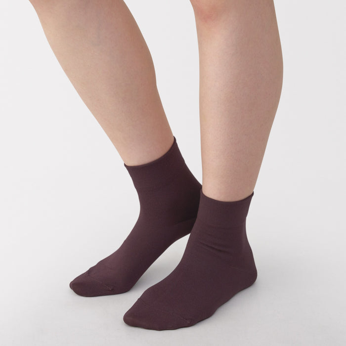 Designed with reduced tightness at the opening for more comfort. As the heel is at a right angle, the socks are knitted at a right angle to wrap comfortably around the heel and prevent the fabric from sagging and slipping off. Made with a smooth rayon material.