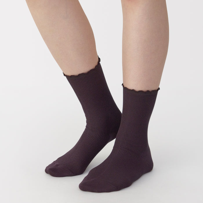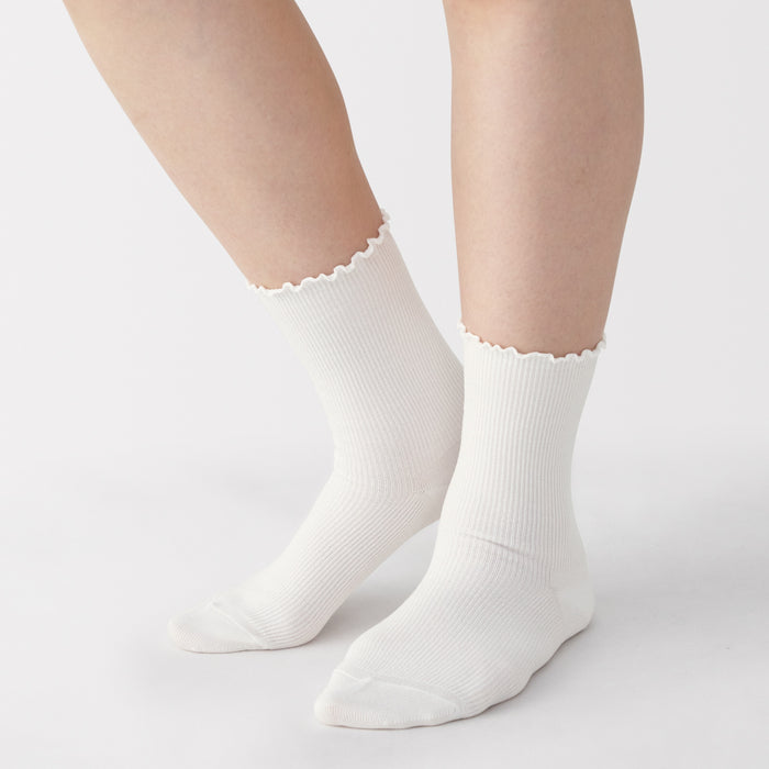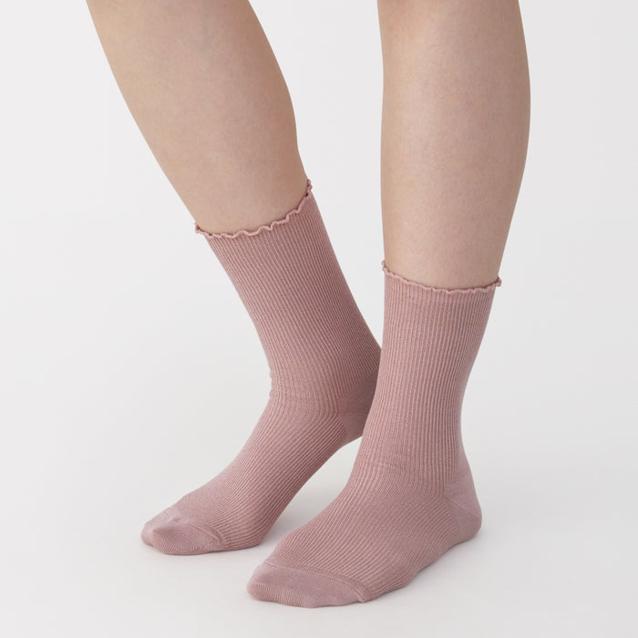 Designed with reduced tightness at the opening for more comfort. The toes and heels are reinforced with extra thread for durability. The opening is finished with a delicate ruffled lettuce hem. Made with a smooth rayon material.
