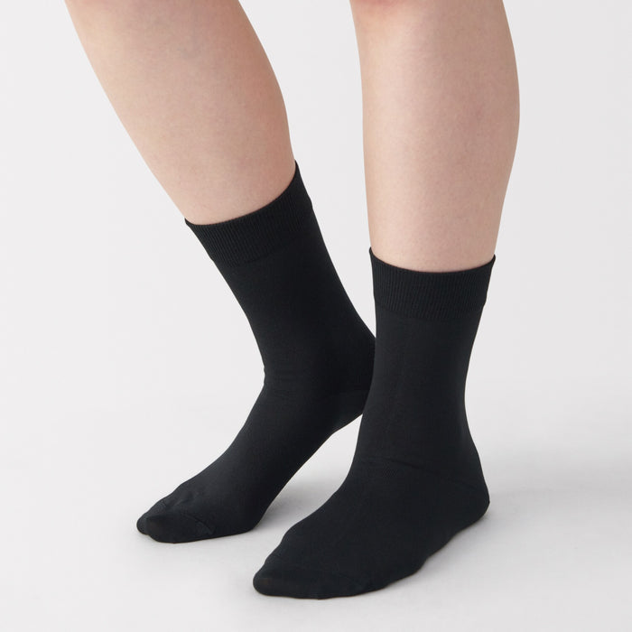 Designed with reduced tightness at the opening for more comfort. As the heel is at a right angle, the socks are knitted at a right angle to wrap comfortably around the heel and prevent the fabric from sagging and slipping off. Made with a smooth rayon material.