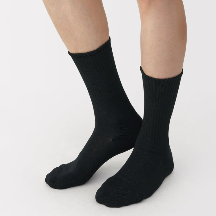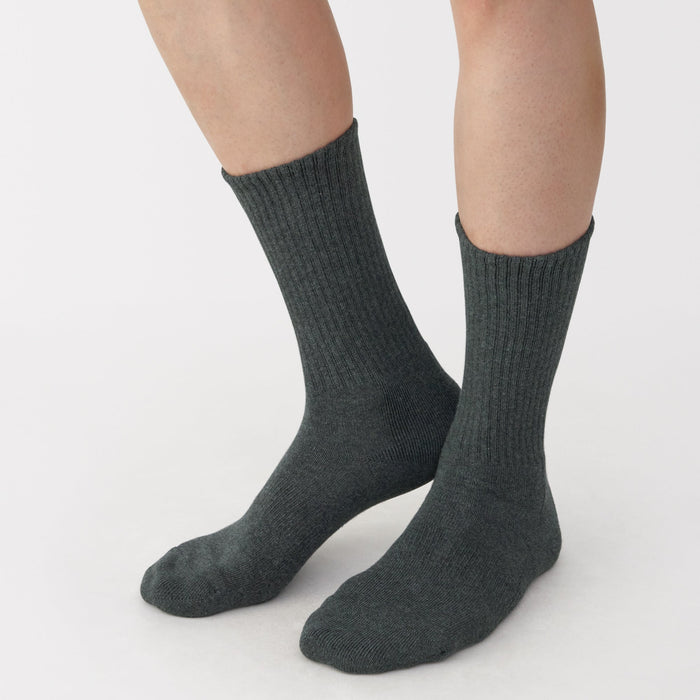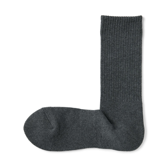 As the heel is at a right angle, the socks are knitted at a right angle to wrap comfortably around the heel and prevent the fabric from sagging and slipping off. Smooth textured pile on the sole for all-day comfort.