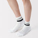 Soft pile-knitted sole with a sweat de-odorizing effect. The heel of the socks is knitted at a right angle to wrap comfortably and naturally around the heel.