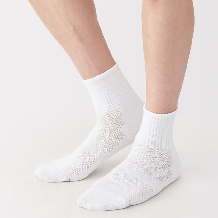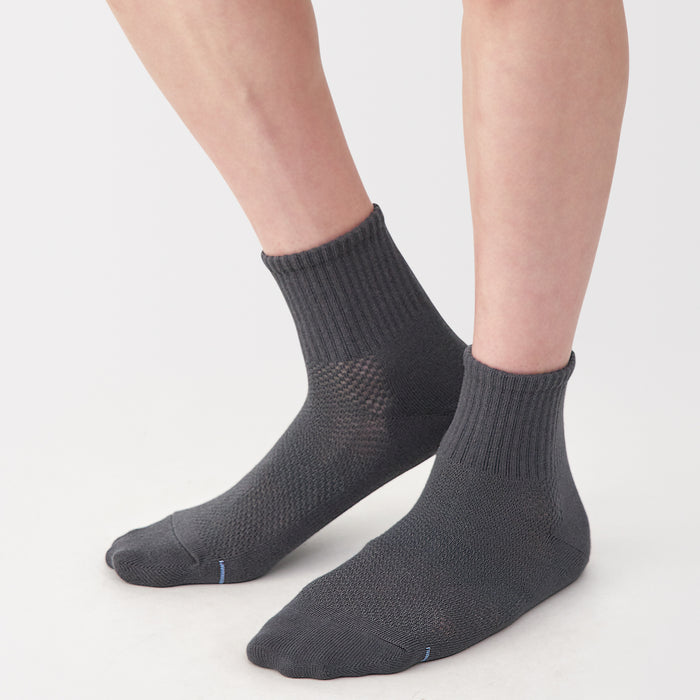 Our socks are designed at a right angle to wrap comfortably and naturally around the heel without slipping down. Designed for breathability and comfort, these socks feature a mesh-knit upper to keep your feet cool and dry, with a sweat-deodorizing effect.