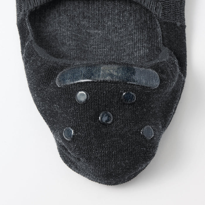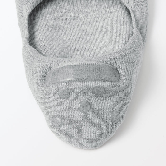 No-show sneaker socks with silicone heel grips that prevent them from sliding down. The seam line on the toes are stitched flat to prevent discomfort, and the reinforced threading at the toes and heel has a sweat deodorizing effect.