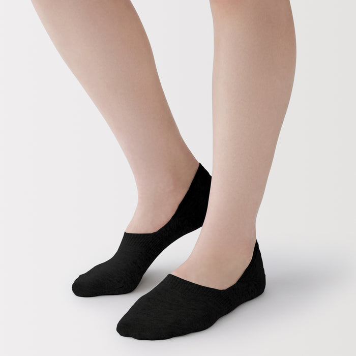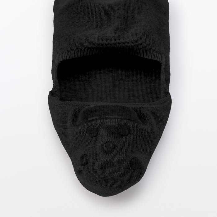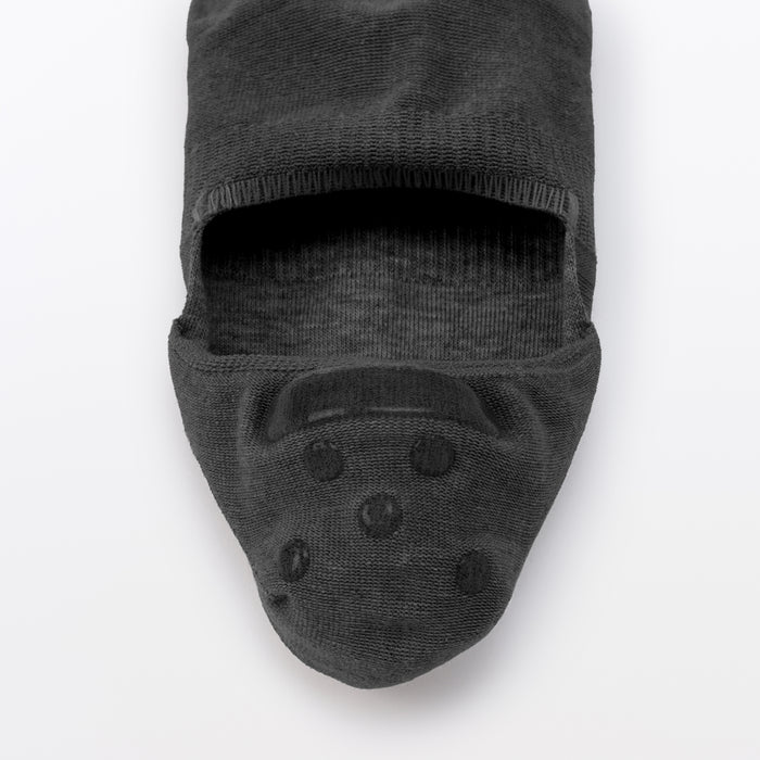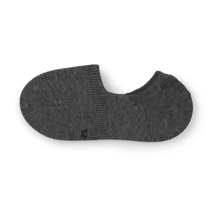 No-show sneaker socks with silicone heel grips that prevent them from sliding down. The seam line on the toes are stitched flat to prevent discomfort, and the reinforced threading at the toes and heel has a sweat deodorizing effect.