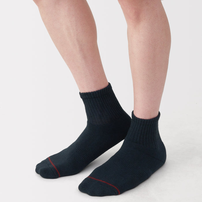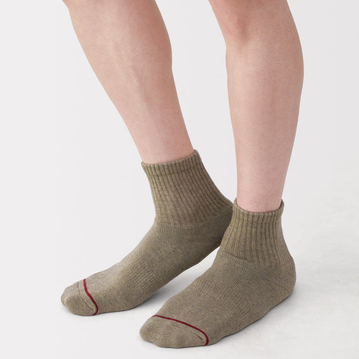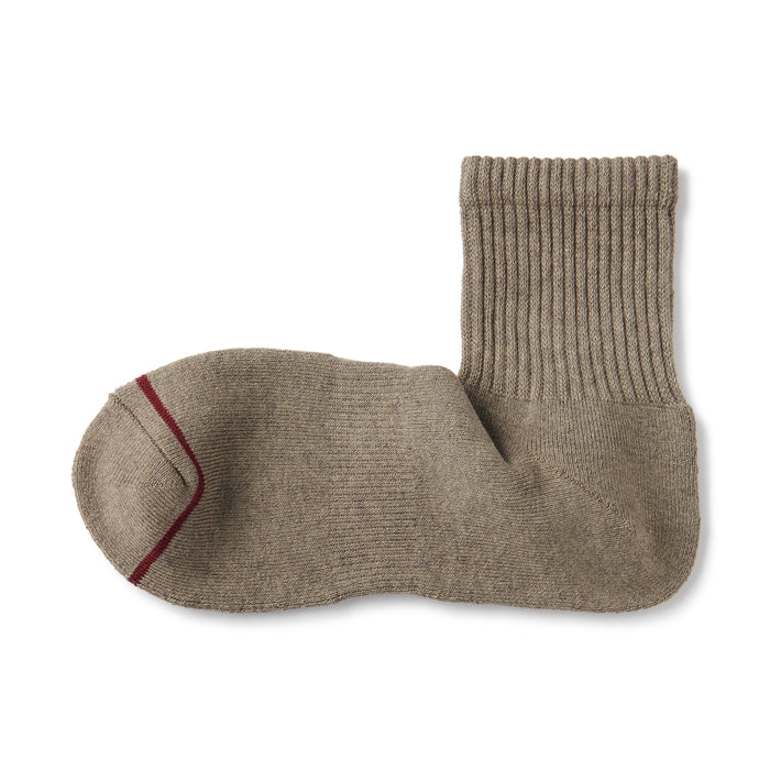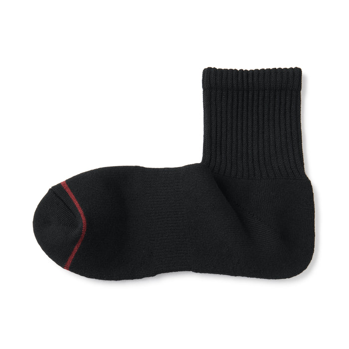 Keep your feet warm and comfortable during colder weather with our cozy cotton and wool blend thick socks. Soft organic cotton provides enhanced moisture absorption and heat generation, while the wool insulates and keeps your toes toasty. The inner side uses yarn with a deodorizing effect to suppress sweat odors. A red line has been added to the toe for easy distinction and identification when stored with other socks.